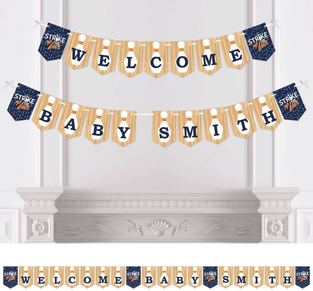 Personalized Strike Up the Fun - Bowling - Custom Baby Shower Bunting Banner and Decorations - Welcome Baby Custom Name Banner