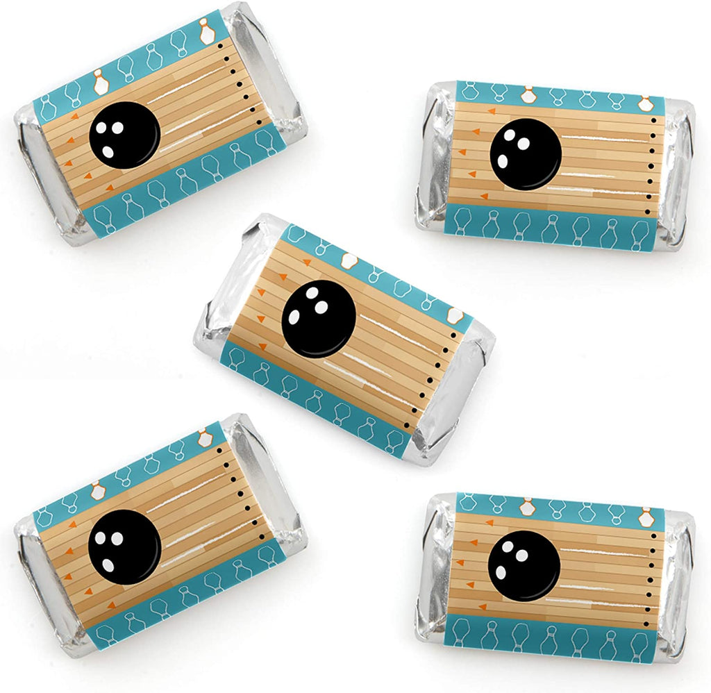 Strike Up the Fun - Bowling - Mini Candy Bar Wrapper Stickers - Birthday Party or Baby Shower Small Favors - 40 Count