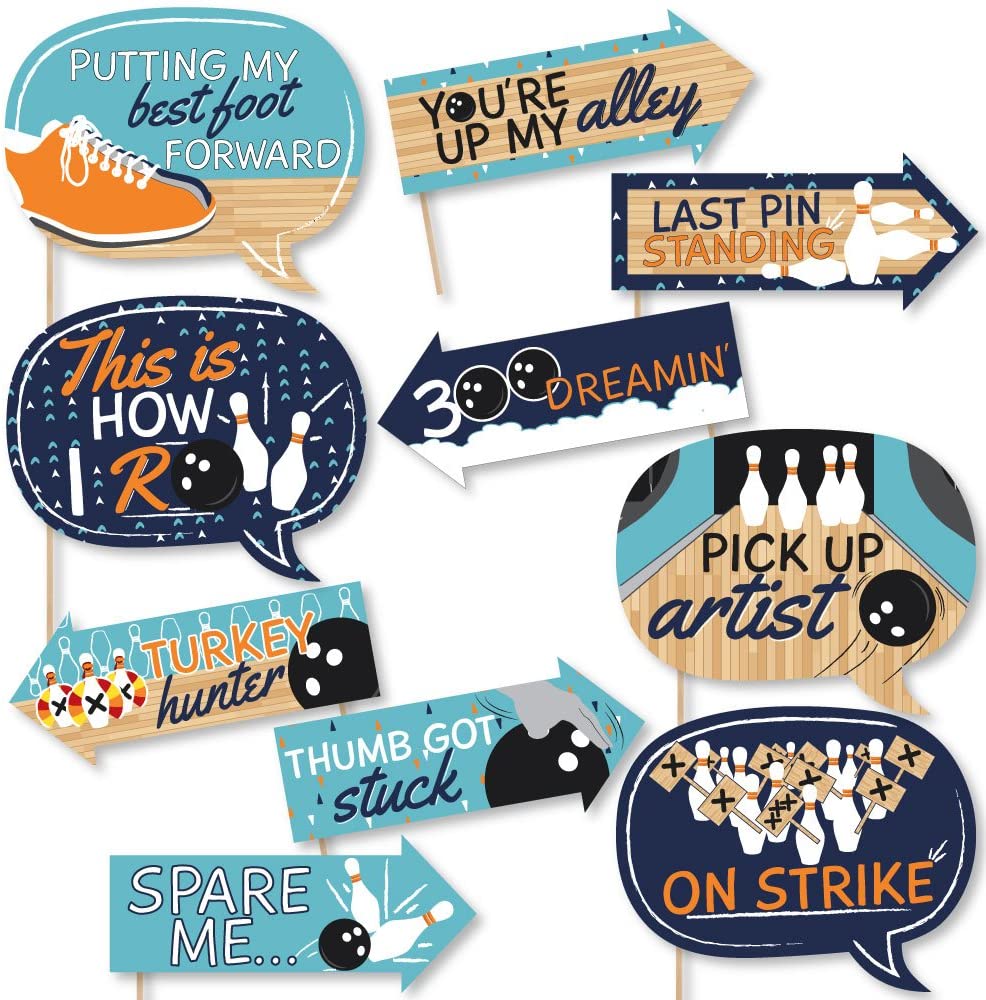 Funny Strike Up the Fun - Bowling - Birthday Party or Baby Shower Photo Booth Props Kit - 10 Piece