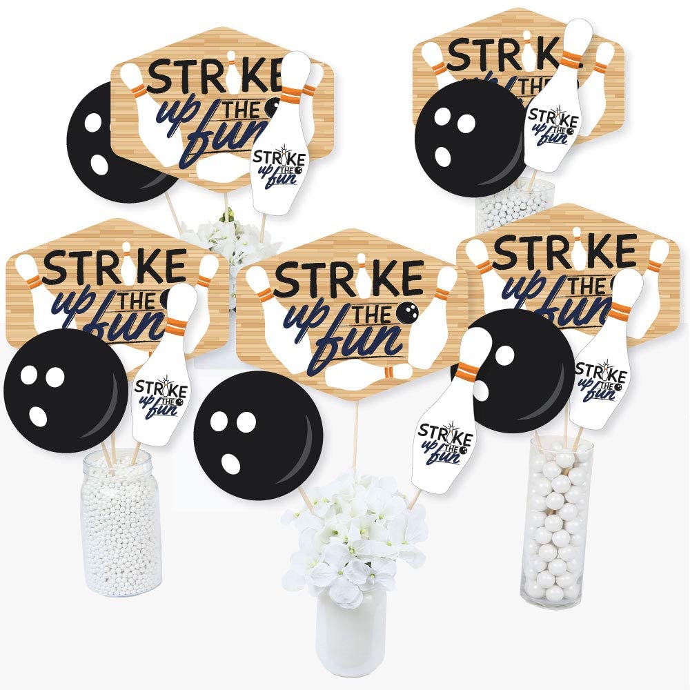 Strike Up the Fun - Bowling - Birthday Party or Baby Shower Centerpiece Sticks - Table Toppers - Set of 15