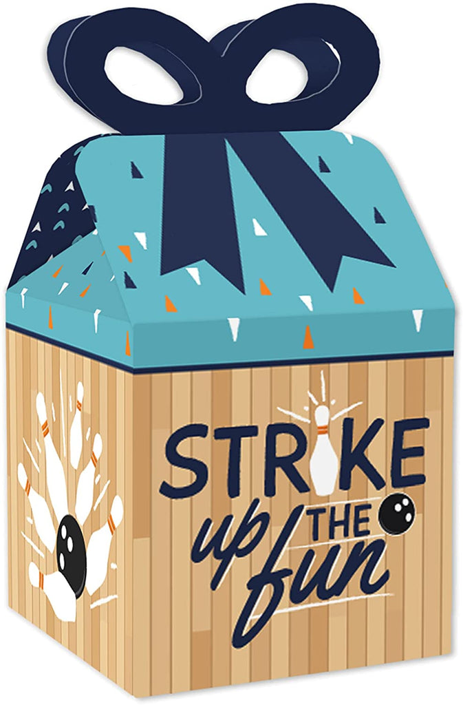 Strike Up the Fun - Bowling - Square Favor Gift Boxes - Birthday Party or Baby Shower Bow Boxes - Set of 12