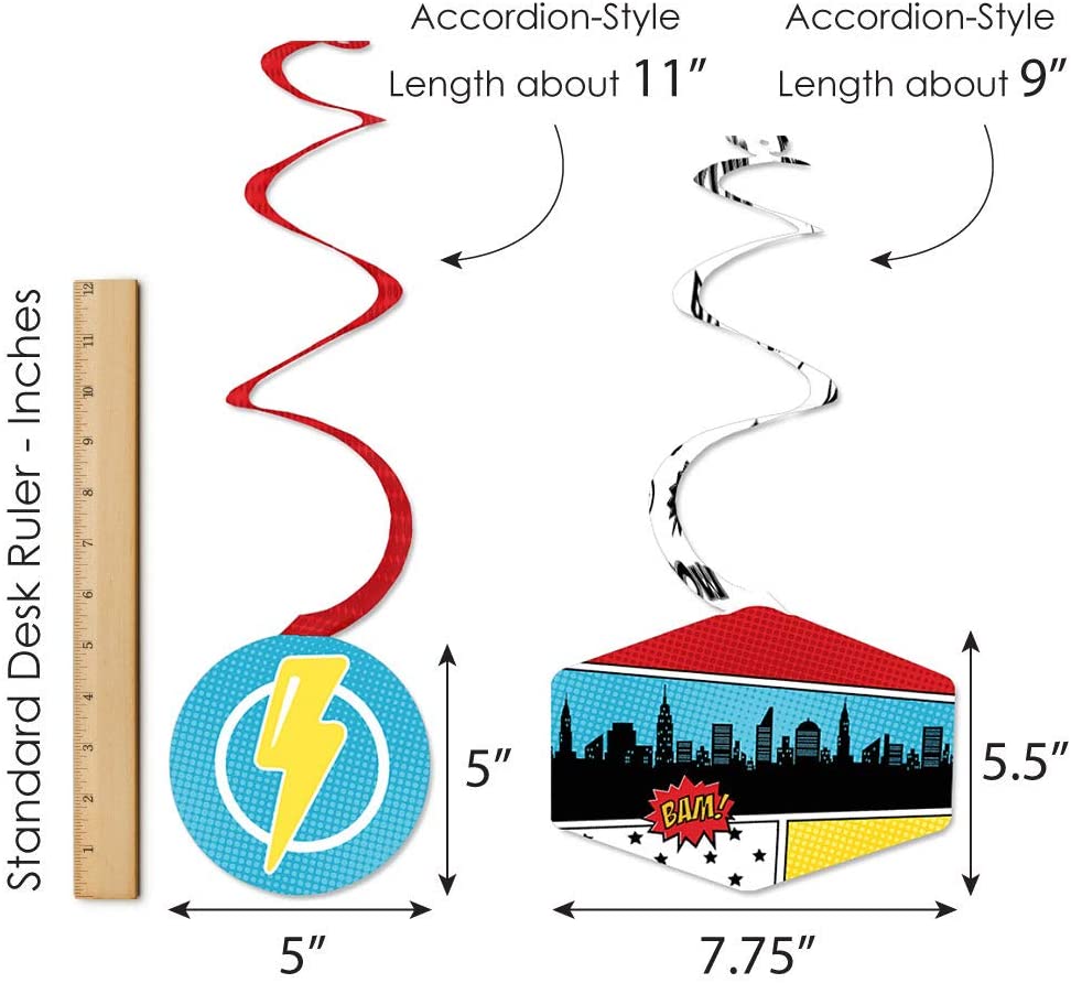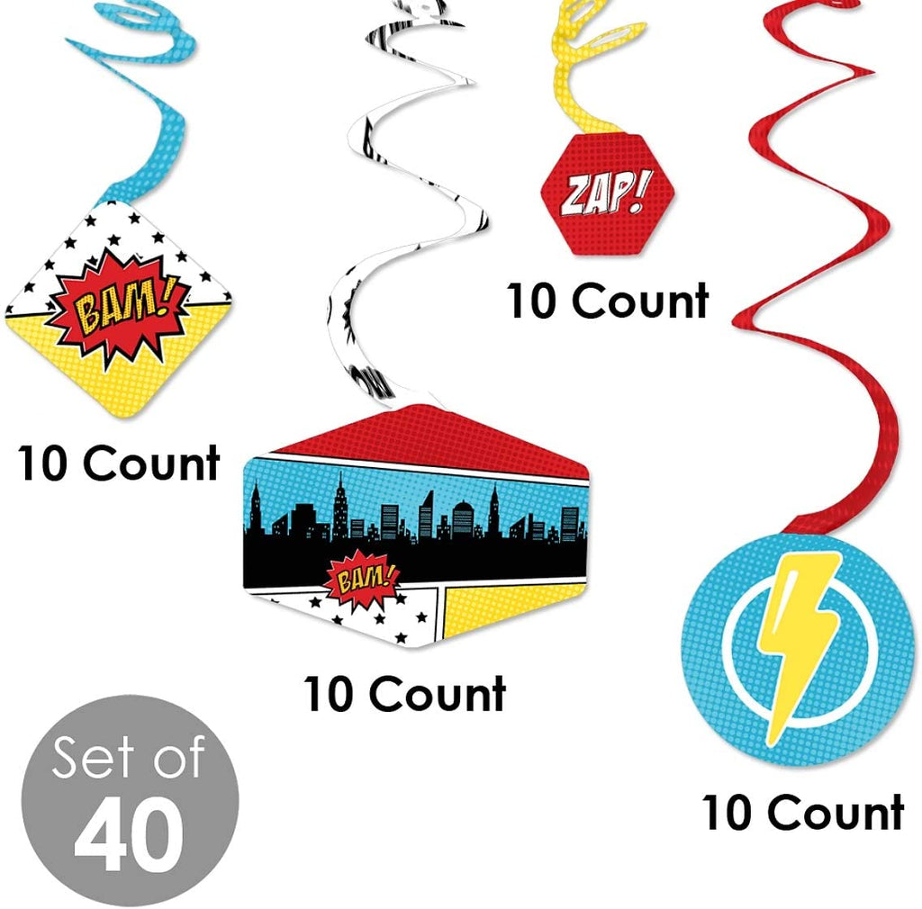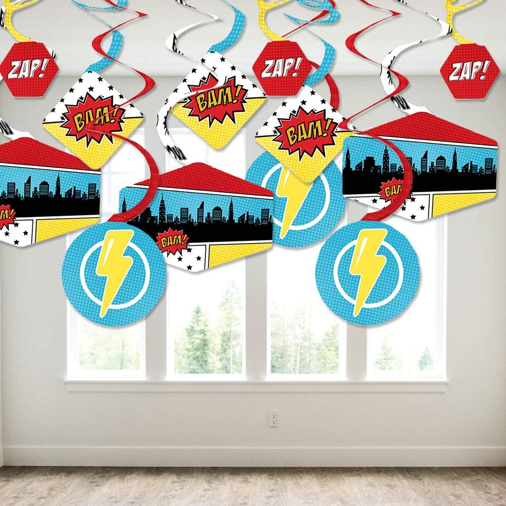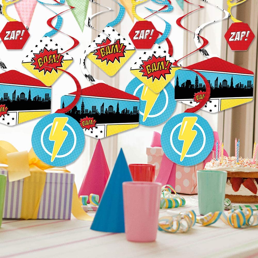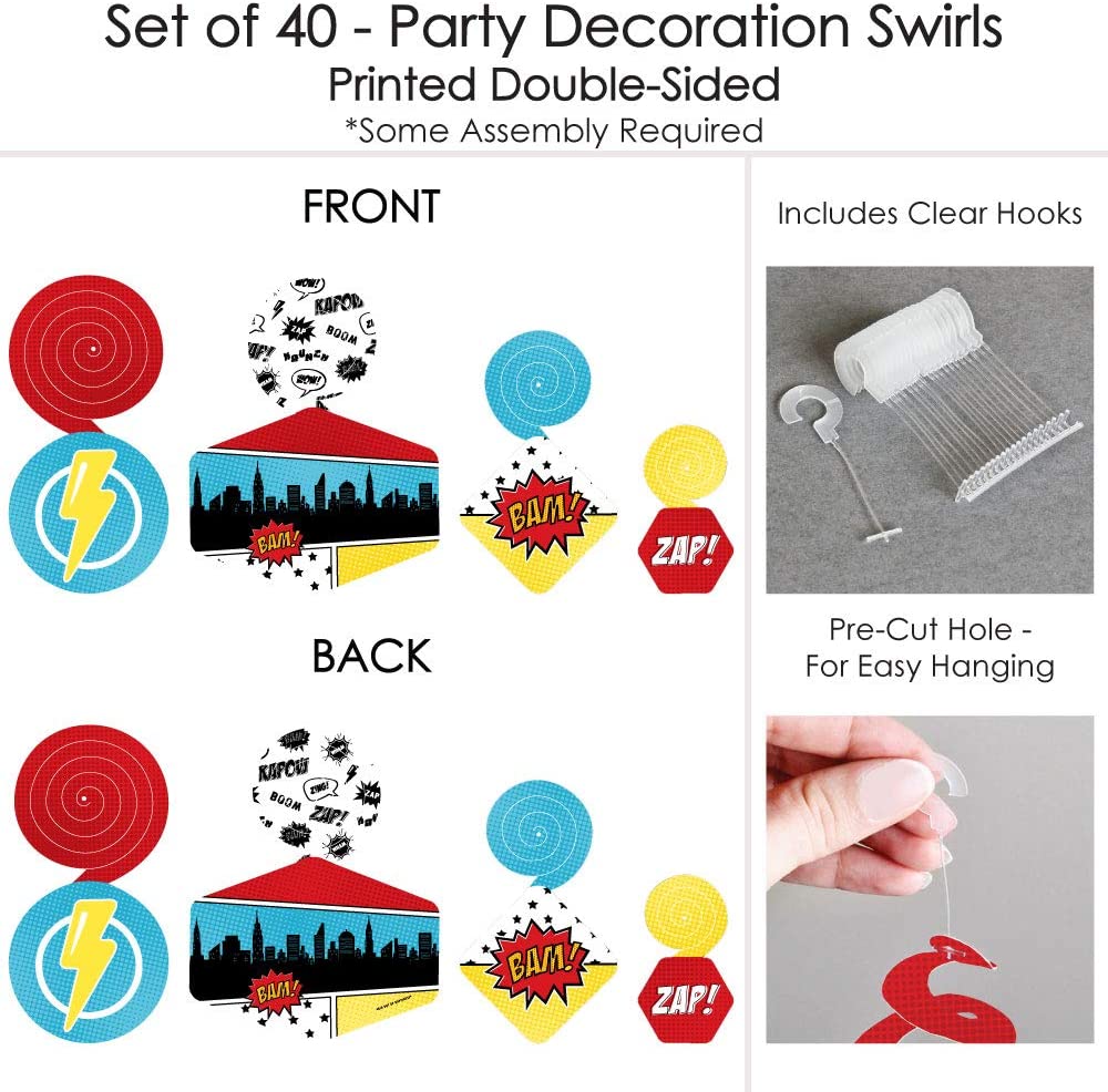 Bam Superhero - Baby Shower or Birthday Party Hanging Decor - Party Decoration Swirls - Set of 40 is backordered and will ship as soon as it is back in stock.