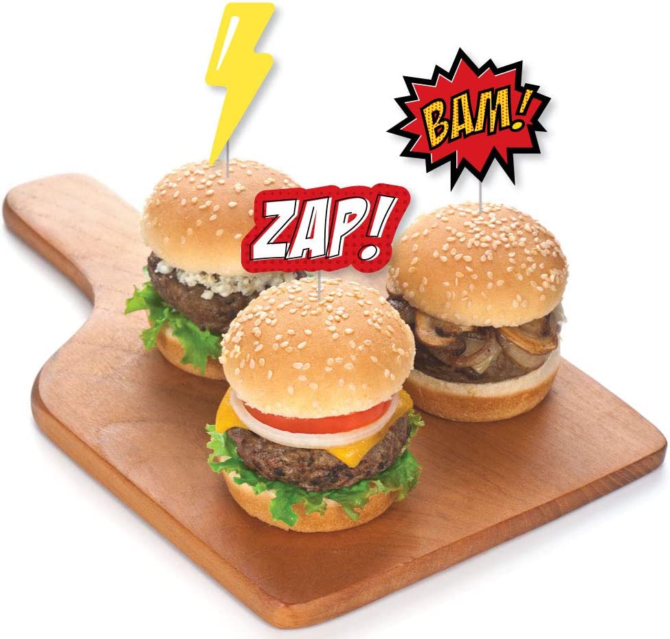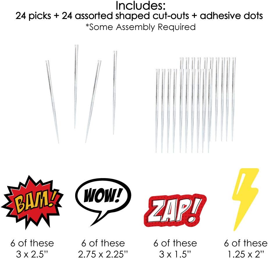 Bam Superhero - Dessert Cupcake Toppers - Baby Shower or Birthday Party Clear Treat Picks - Set of 24 is backordered and will ship as soon as it is back in stock.