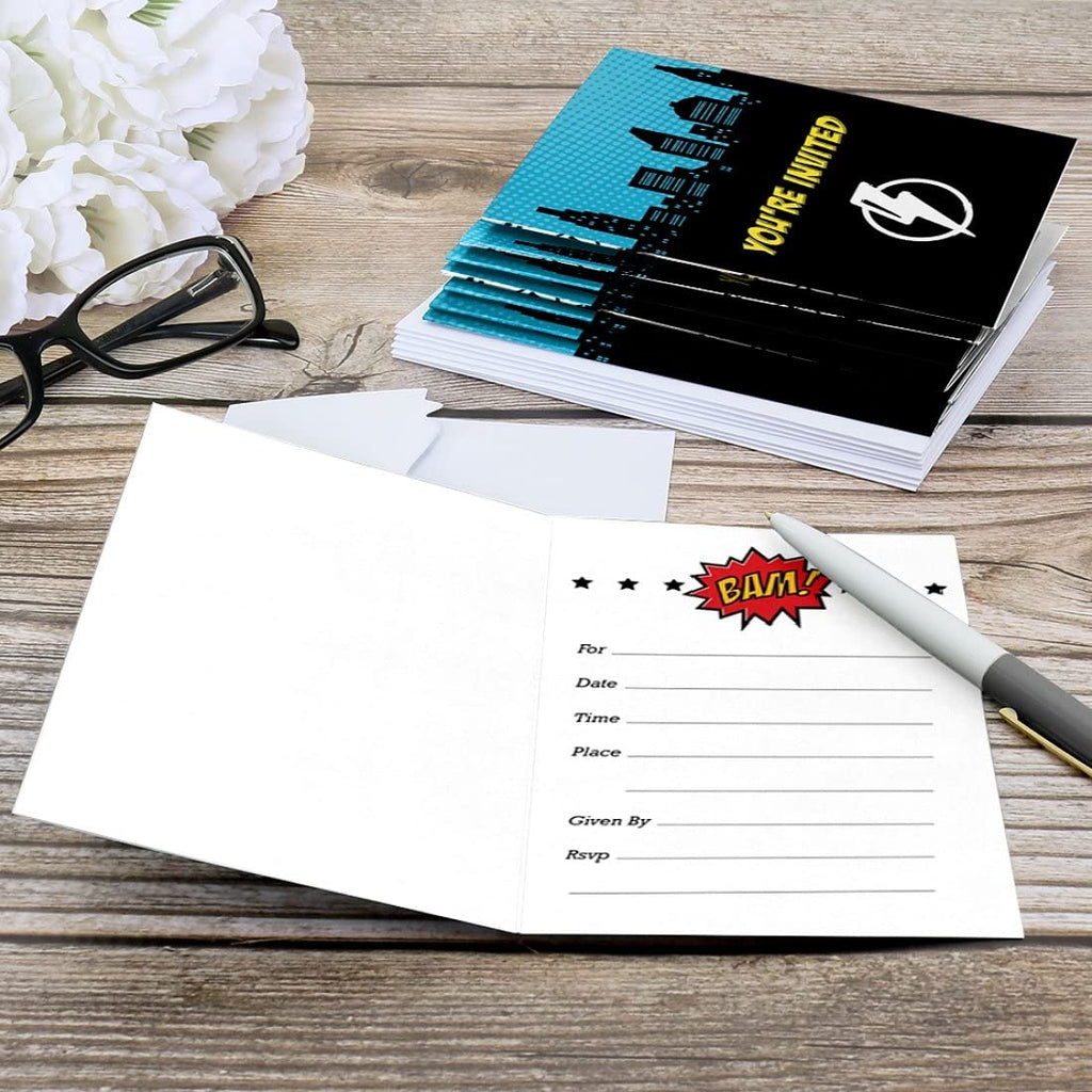 Bam Superhero - Fill-in Baby Shower or Birthday Party Invitations (8 Count) is backordered and will ship as soon as it is back in stock.