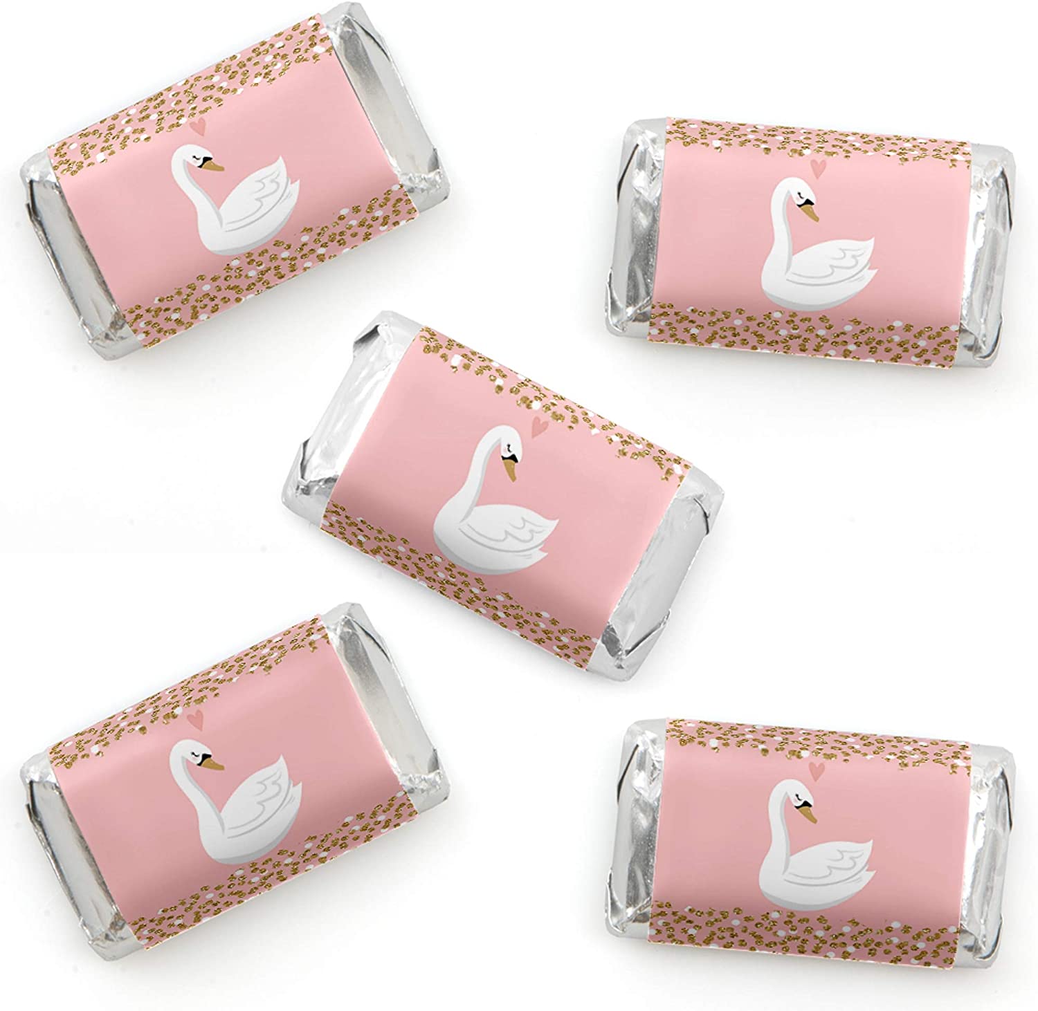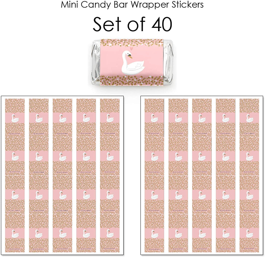 Swan Soiree - Mini Candy Bar Wrapper Stickers - White Swan Baby Shower or Birthday Party Small Favors - 40 Count is backordered and will ship as soon as it is back in stock.