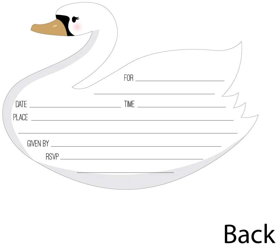 Swan Soiree - Shaped Fill-In Invitations - White Swan Baby Shower or Birthday Party Invitation Cards with Envelopes - Set of 12 is backordered and will ship as soon as it is back in stock.