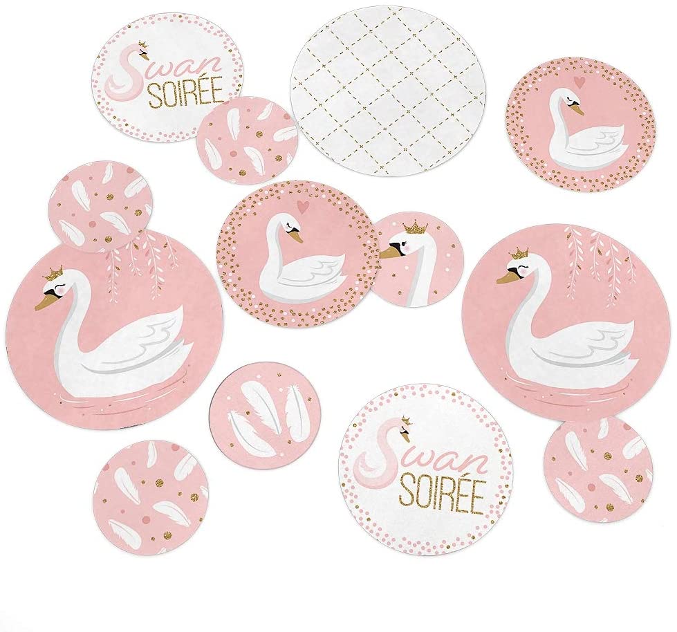 • Swan Soiree Giant Circle Confetti INCLUDES 27 large baby shower or birthday party confetti. Swan Soiree decorations are perfect for a swan lake party.