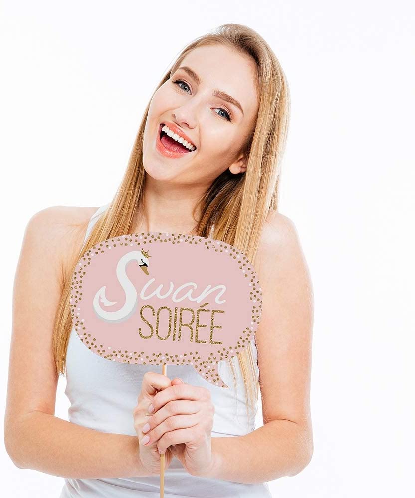Swan Soiree - White Swan Baby Shower or Birthday Party Photo Booth Props Kit - 20 Count is backordered and will ship as soon as it is back in stock.
