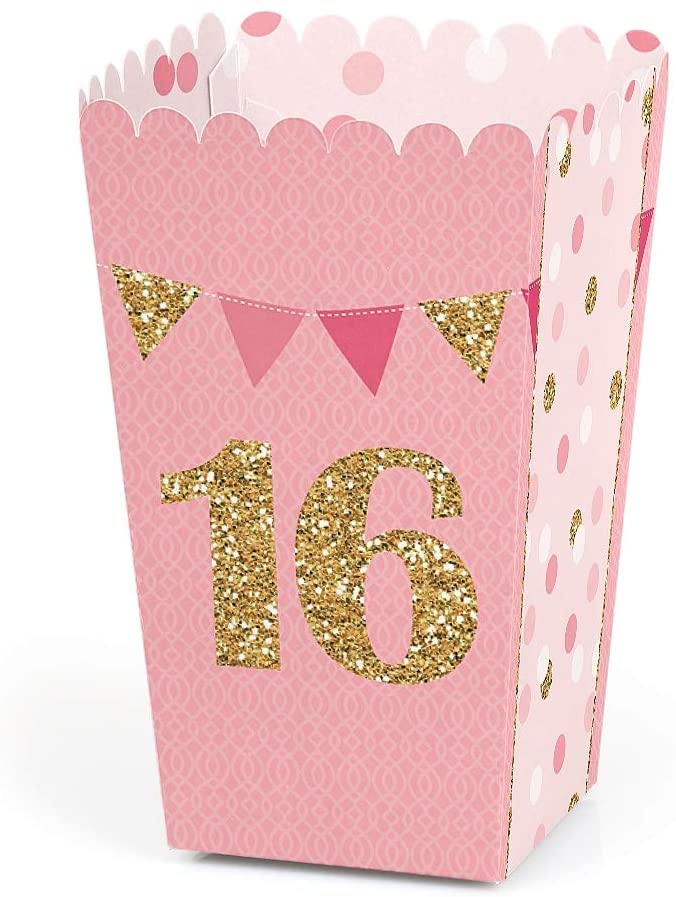 Sweet 16-16th Birthday Party Favor Popcorn Treat Boxes - Set of 12 is backordered and will ship as soon as it is back in stock.