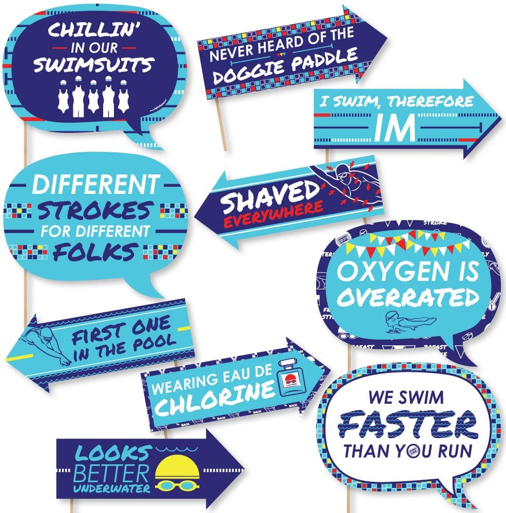 Funny Making Waves - Swim Team - Swimming Party or Birthday Party Photo Booth Props Kit - 10 Piece