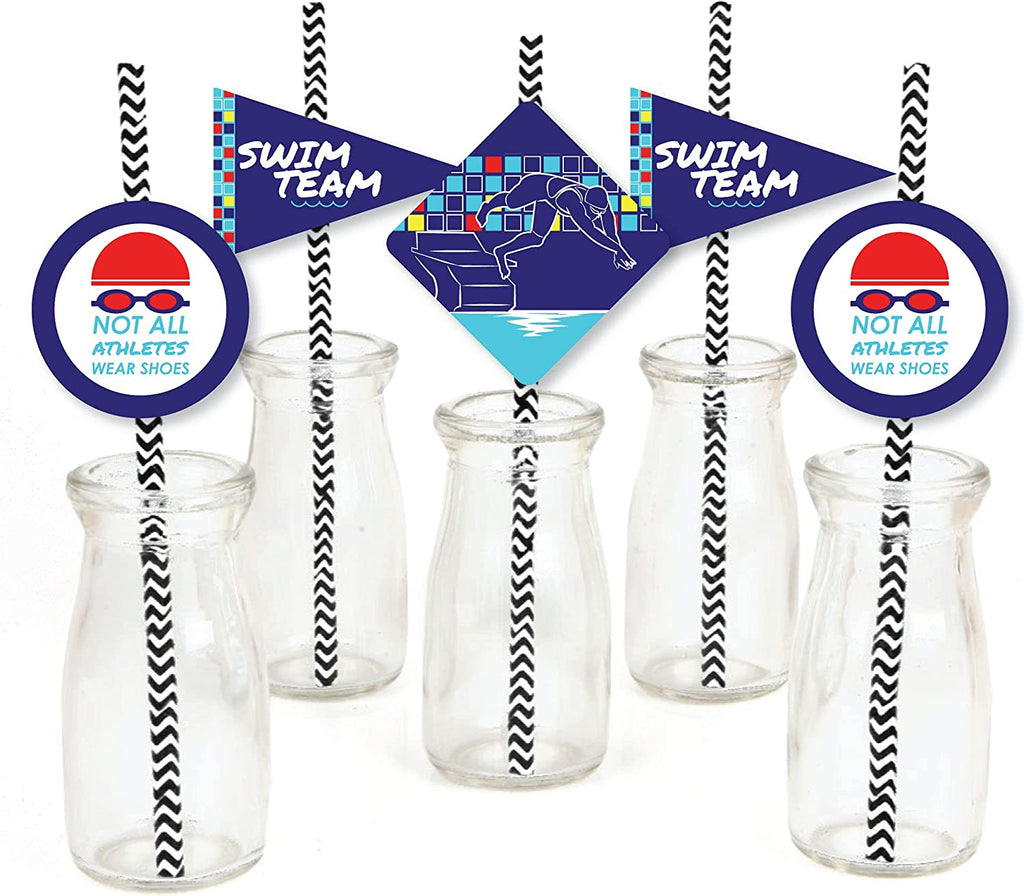 Making Waves - Swim Team - Paper Straw Decor - Swimming Party or Birthday Party Striped Decorative Straws - Set of 24