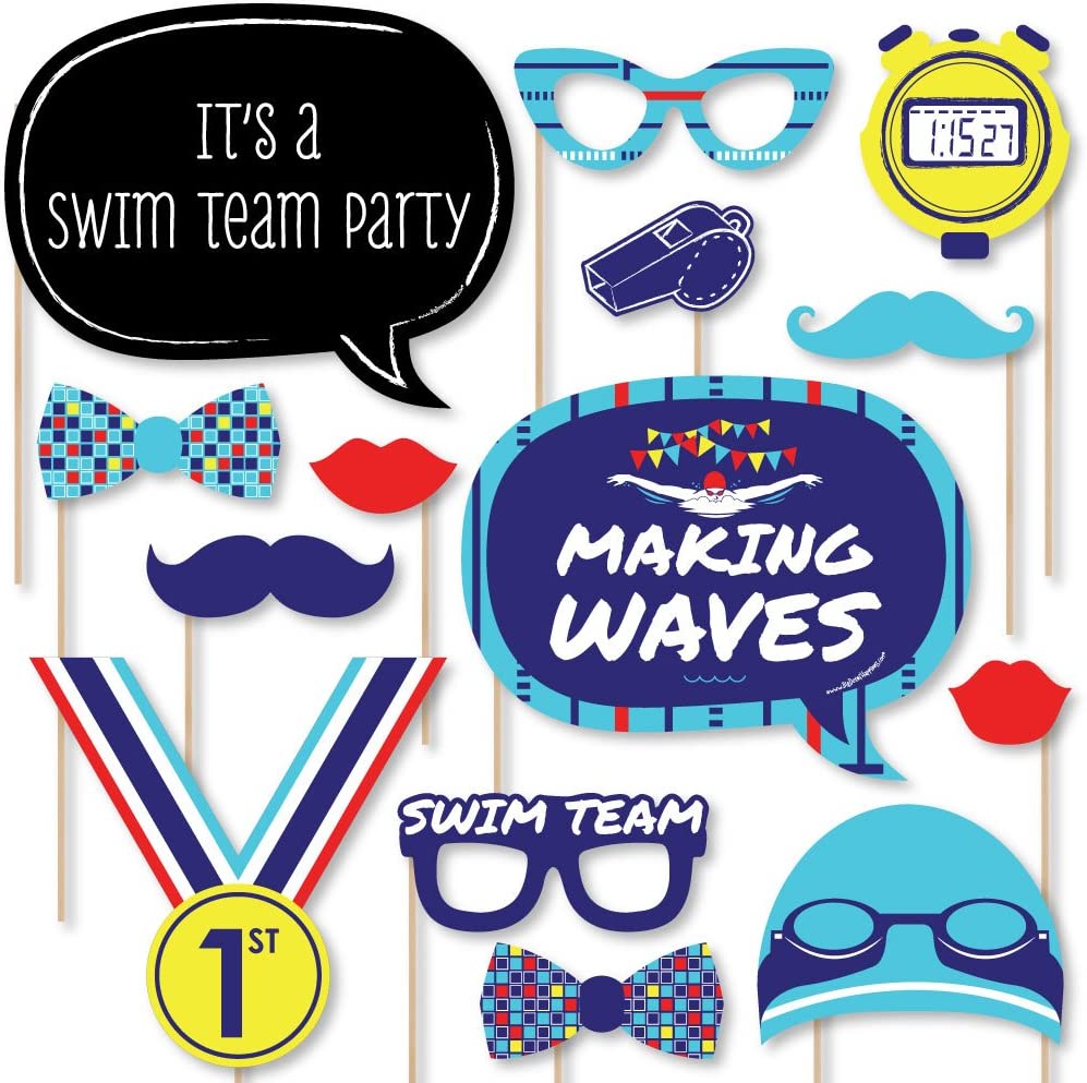Making Waves - Swim Team - Swimming Party Birthday Party Photo Booth Props Kit - 20 Count