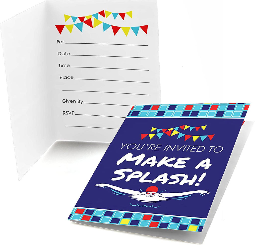 Making Waves - Swim Team - Fill In Swimming Party or Birthday Party Invitations (8 count)