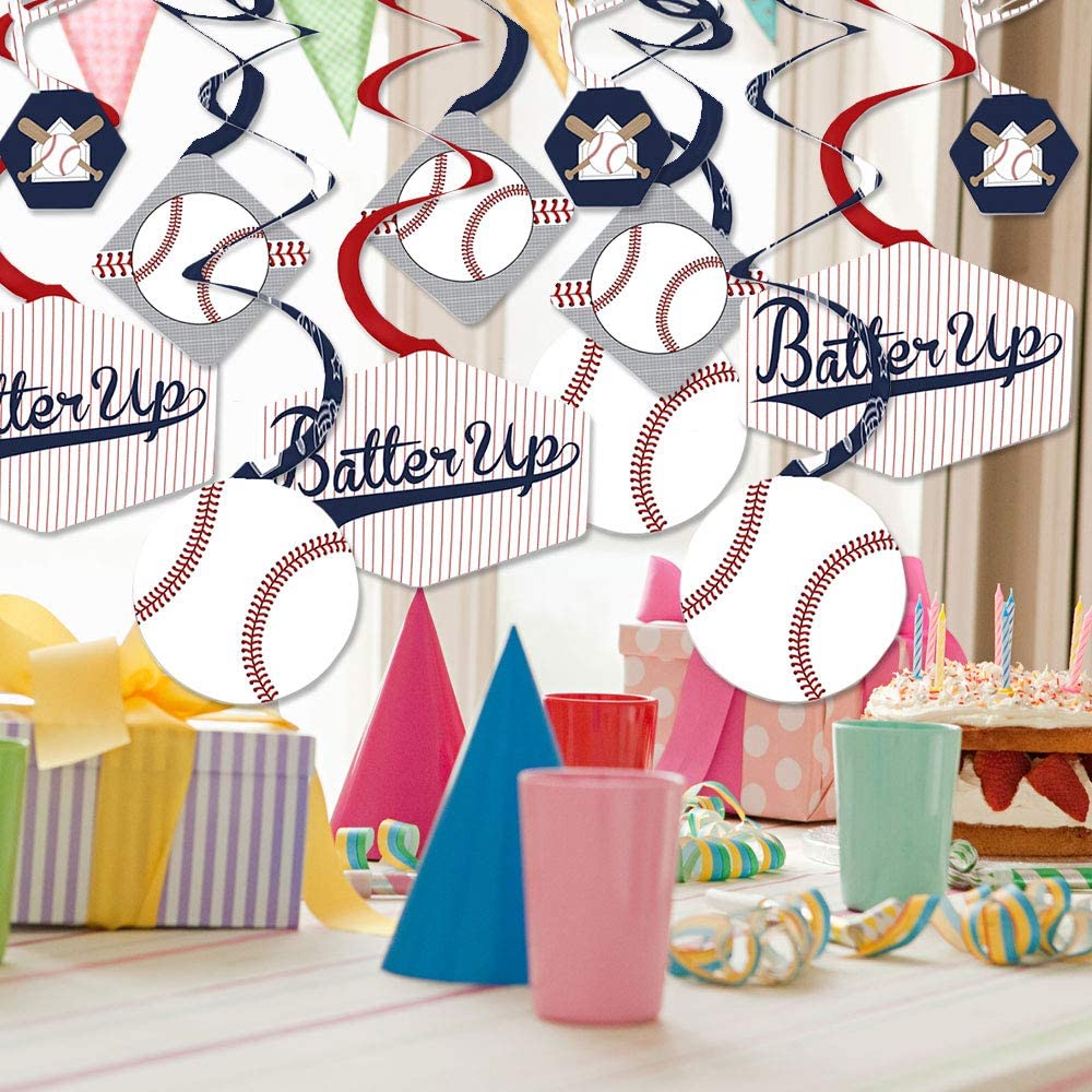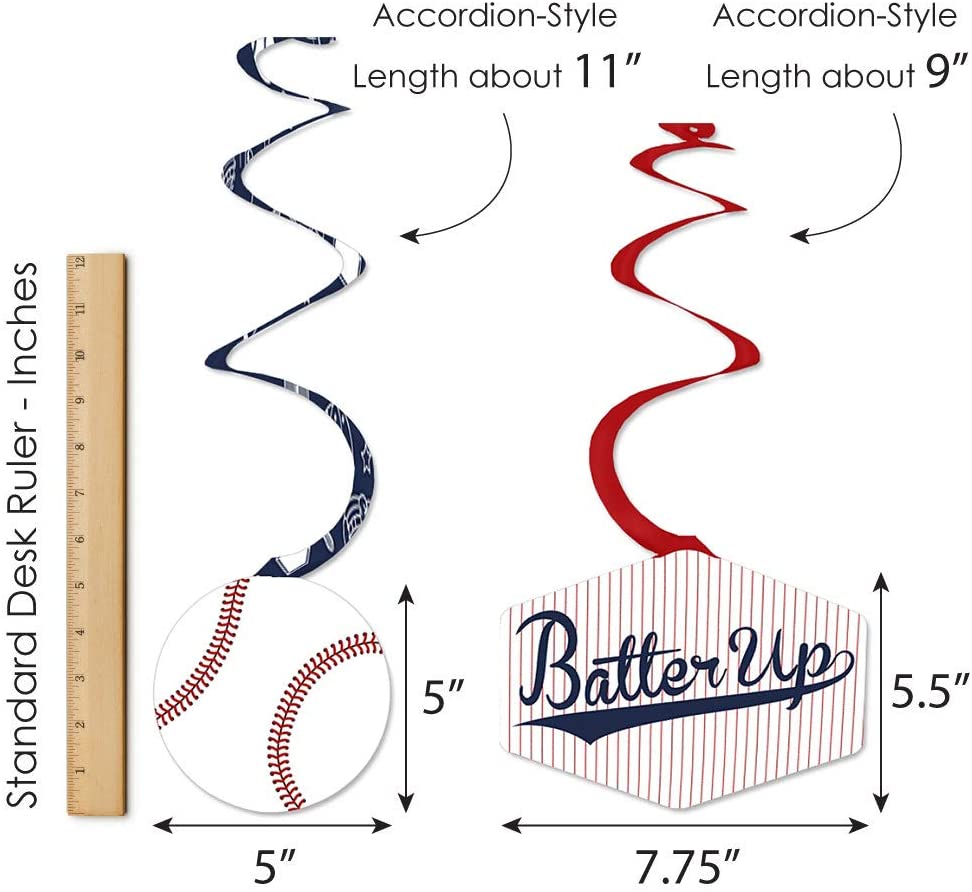 • HIGH-QUALITY PARTY SUPPLY: Batter Up - Baseball Party Decoration Swirls are professionally printed and double-sided on heavy-duty cardstock paper. They are individually cut, inspected, and carefully packaged. Each swirl will use one clear hook.