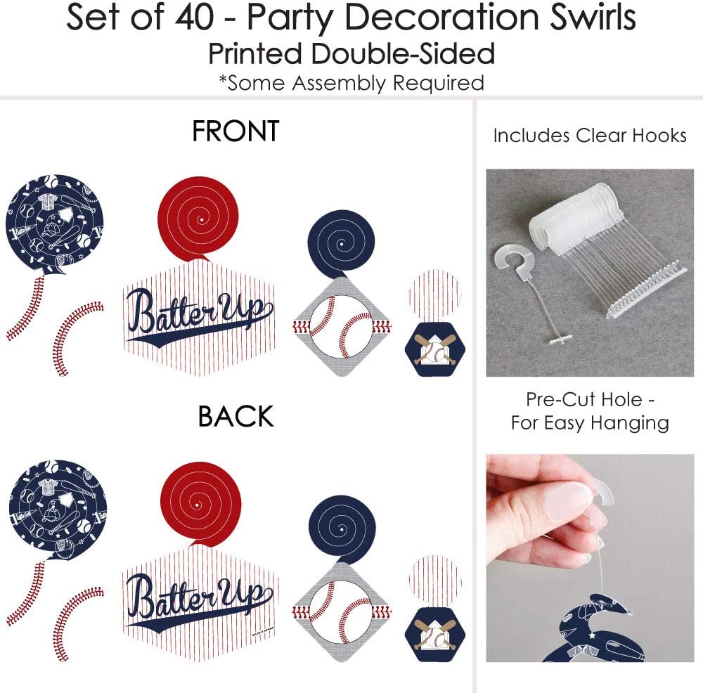 Batter Up - Baseball - Baby Shower or Birthday Party Hanging Decor - Party Decoration Swirls - Set of 40