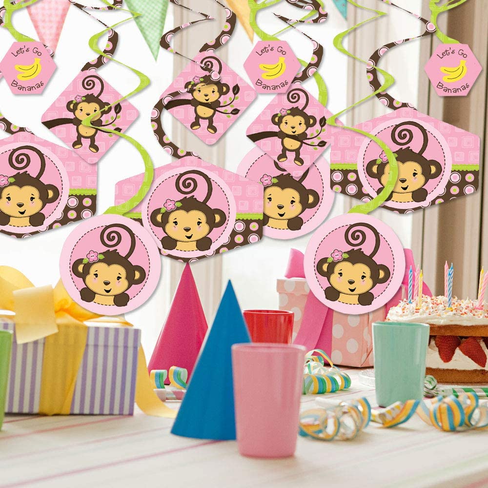 Pink Monkey Girl - Baby Shower or Birthday Party Hanging Decor - Party Decoration Swirls - Set of 40 is backordered and will ship as soon as it is back in stock.