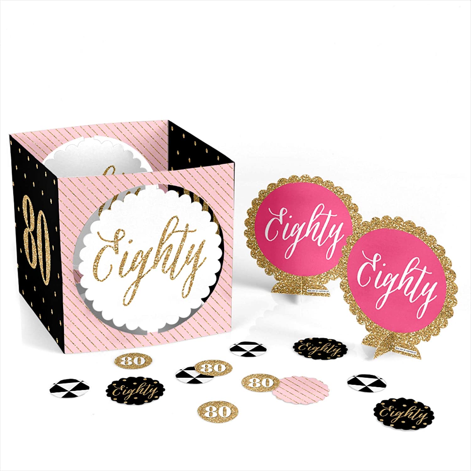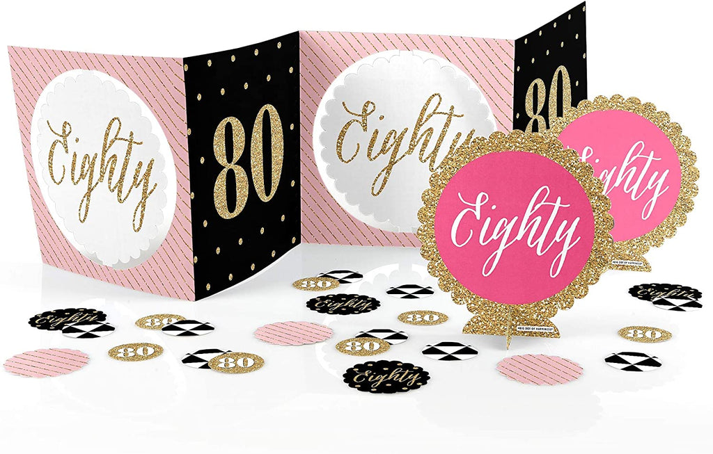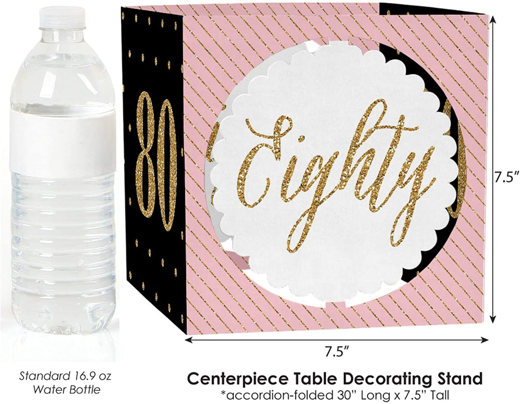 Chic 80th Birthday - Pink, Black and Gold - Birthday Party Centerpiece & Table Decoration Kit is backordered and will ship as soon as it is back in stock.