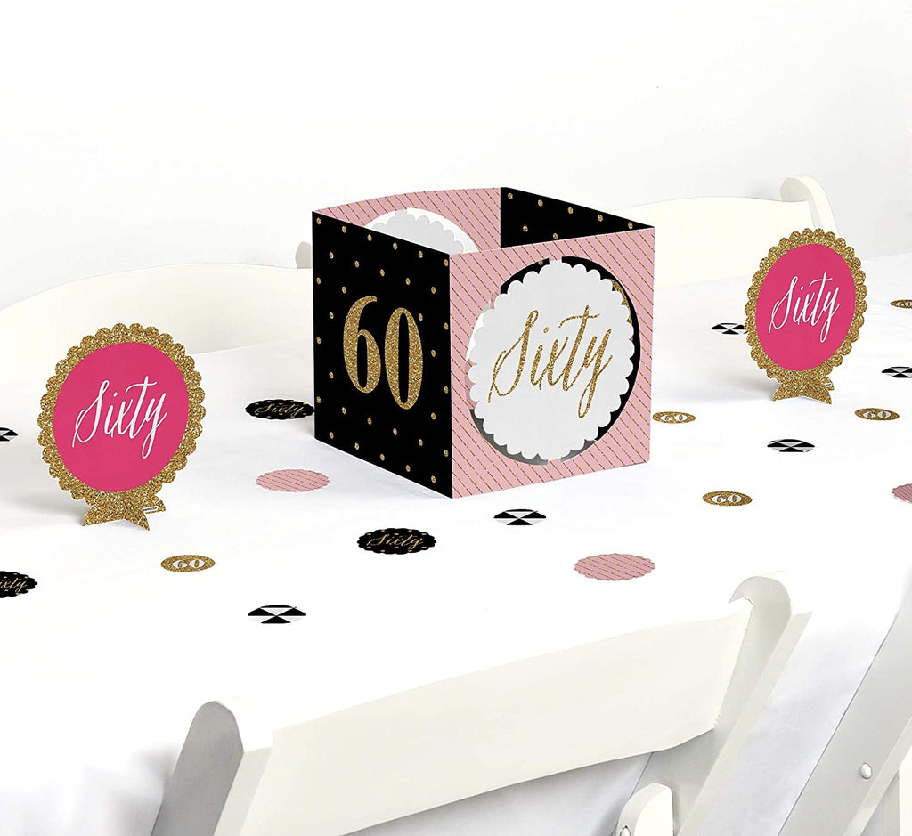 Chic 60th Birthday - Pink, Black and Gold - Birthday Party Centerpiece & Table Decoration Kit