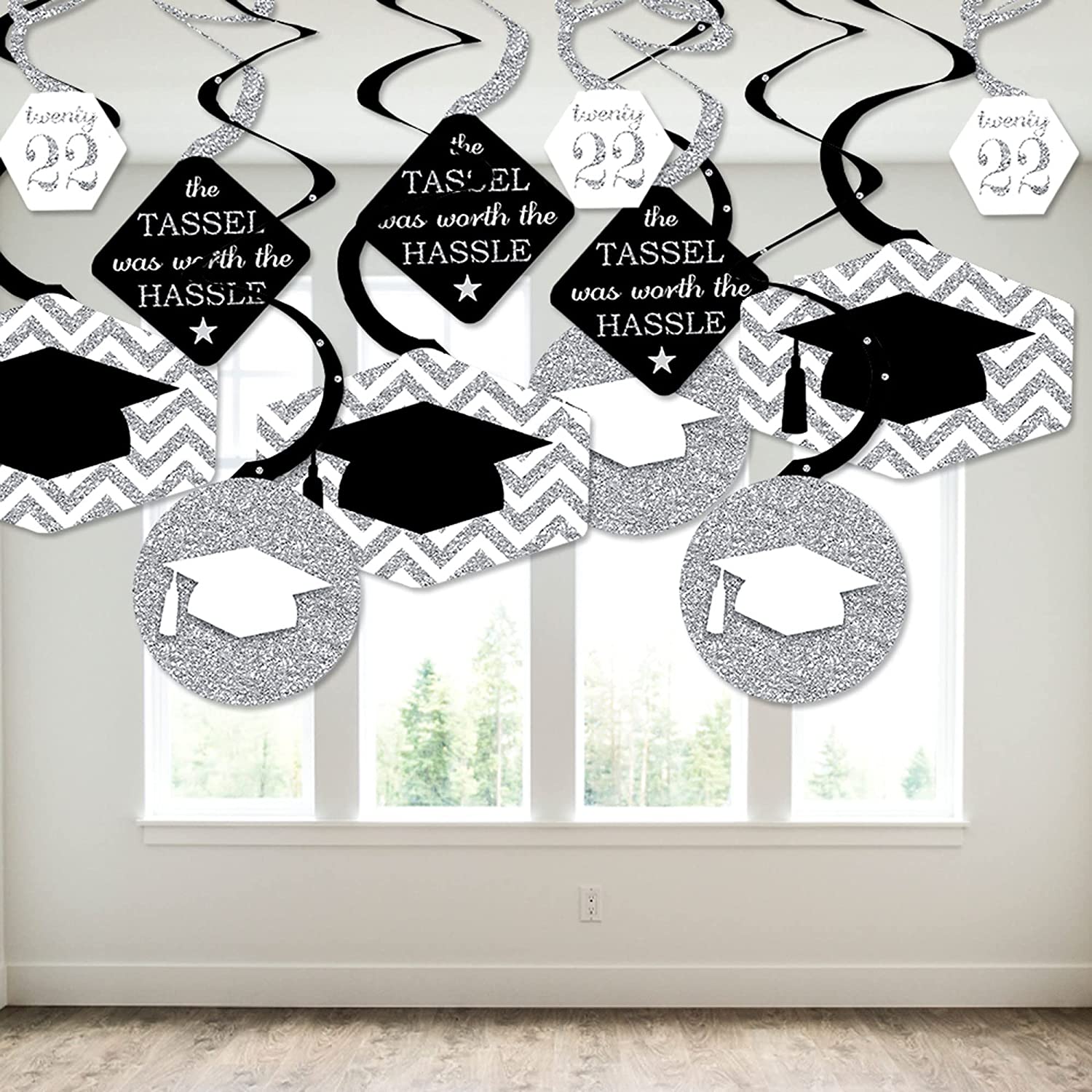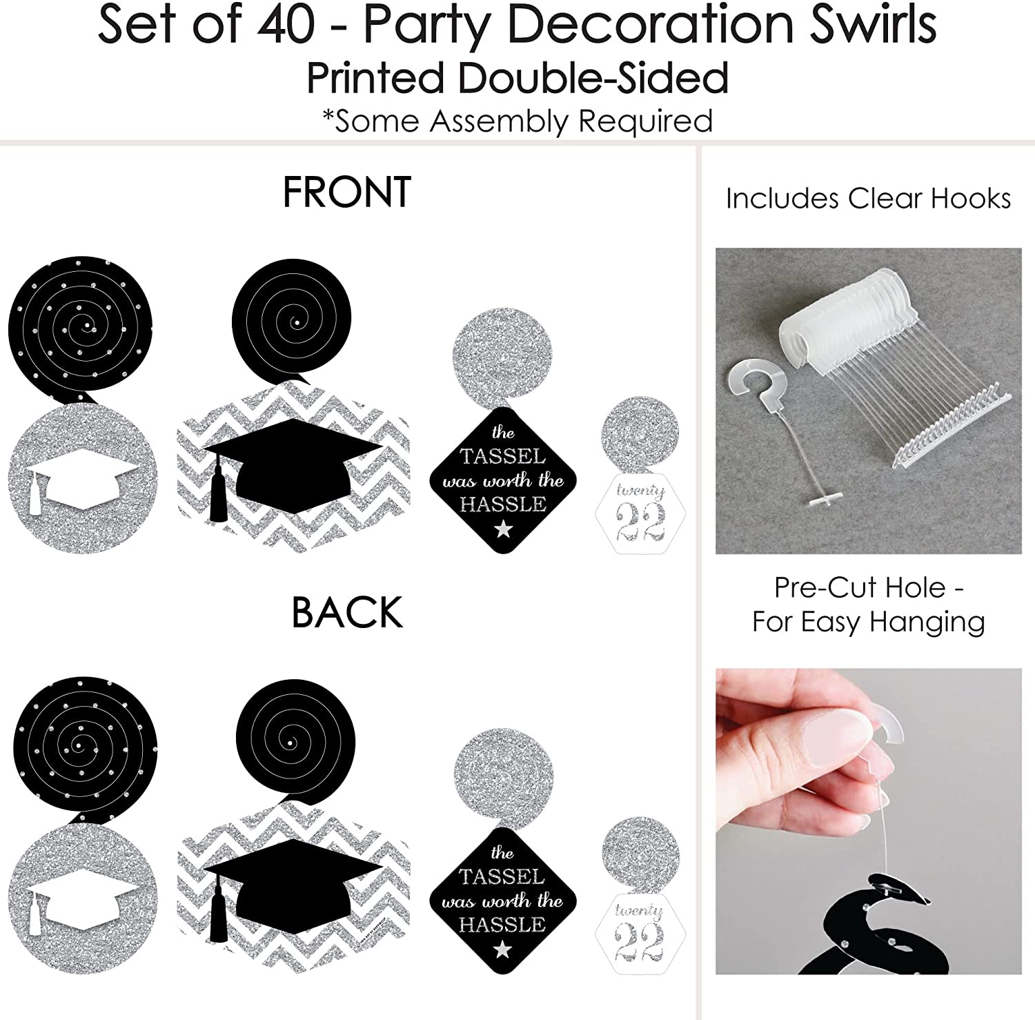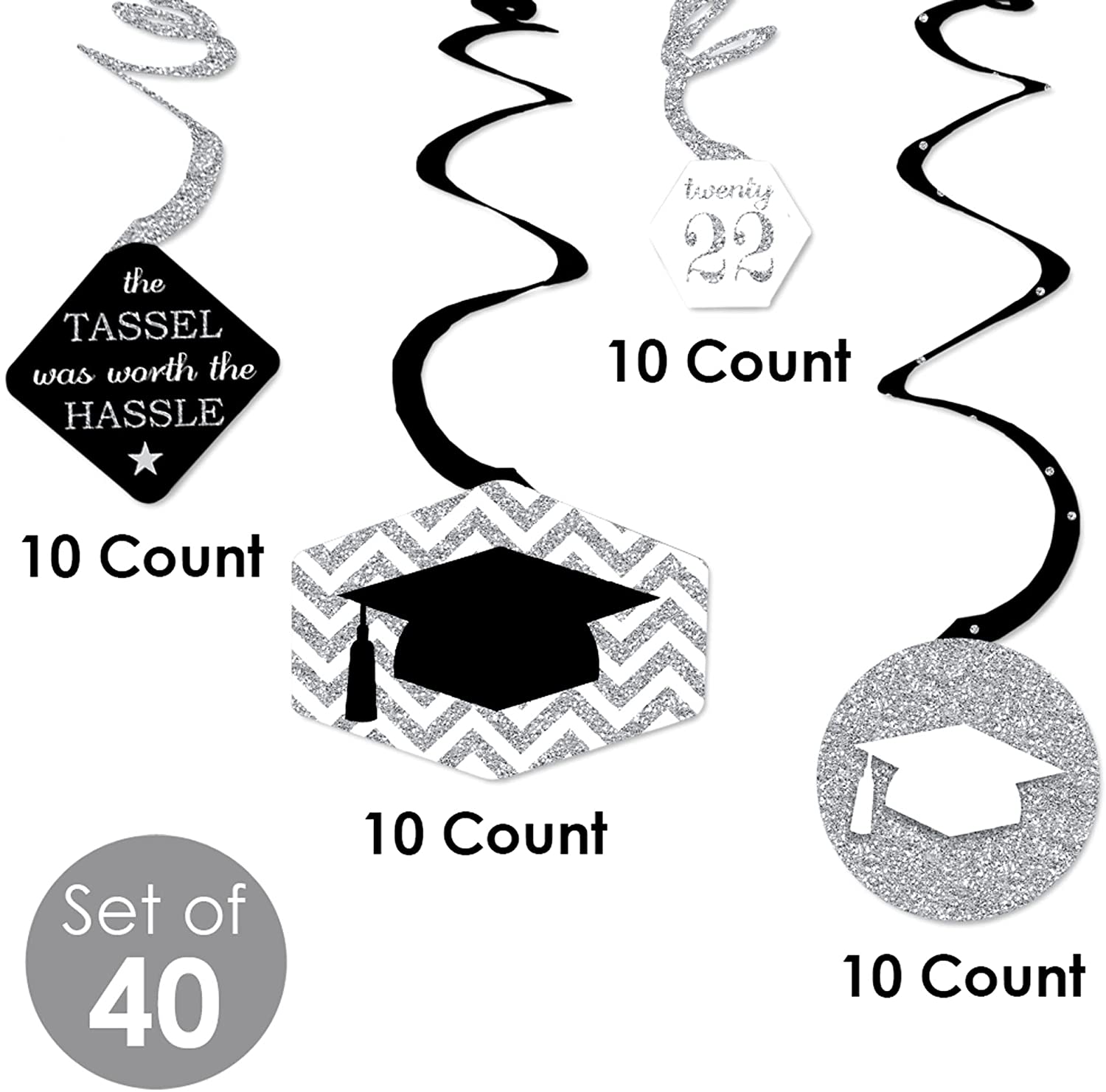 Silver - Tassel Worth The Hassle - 2022 Graduation Party Hanging Decor - Party Decoration Swirls - Set of 40 is backordered and will ship as soon as it is back in stock.