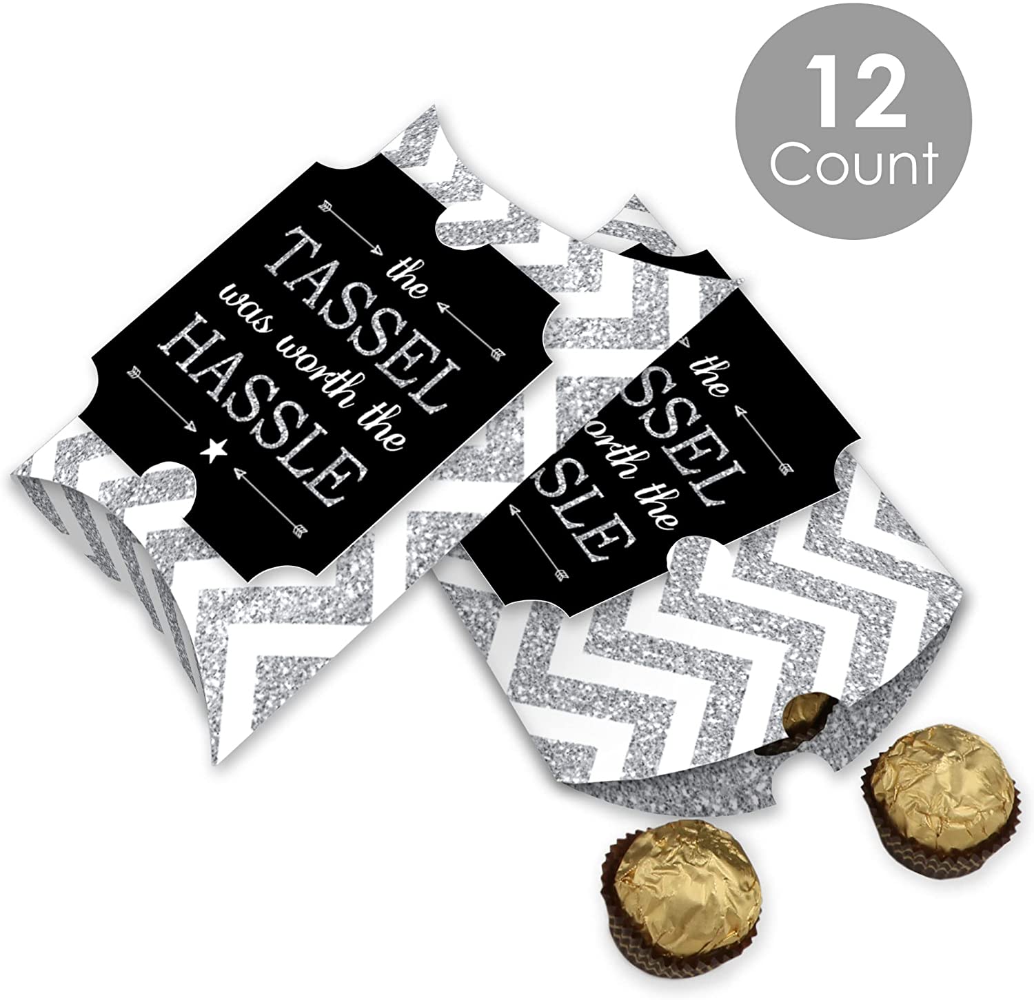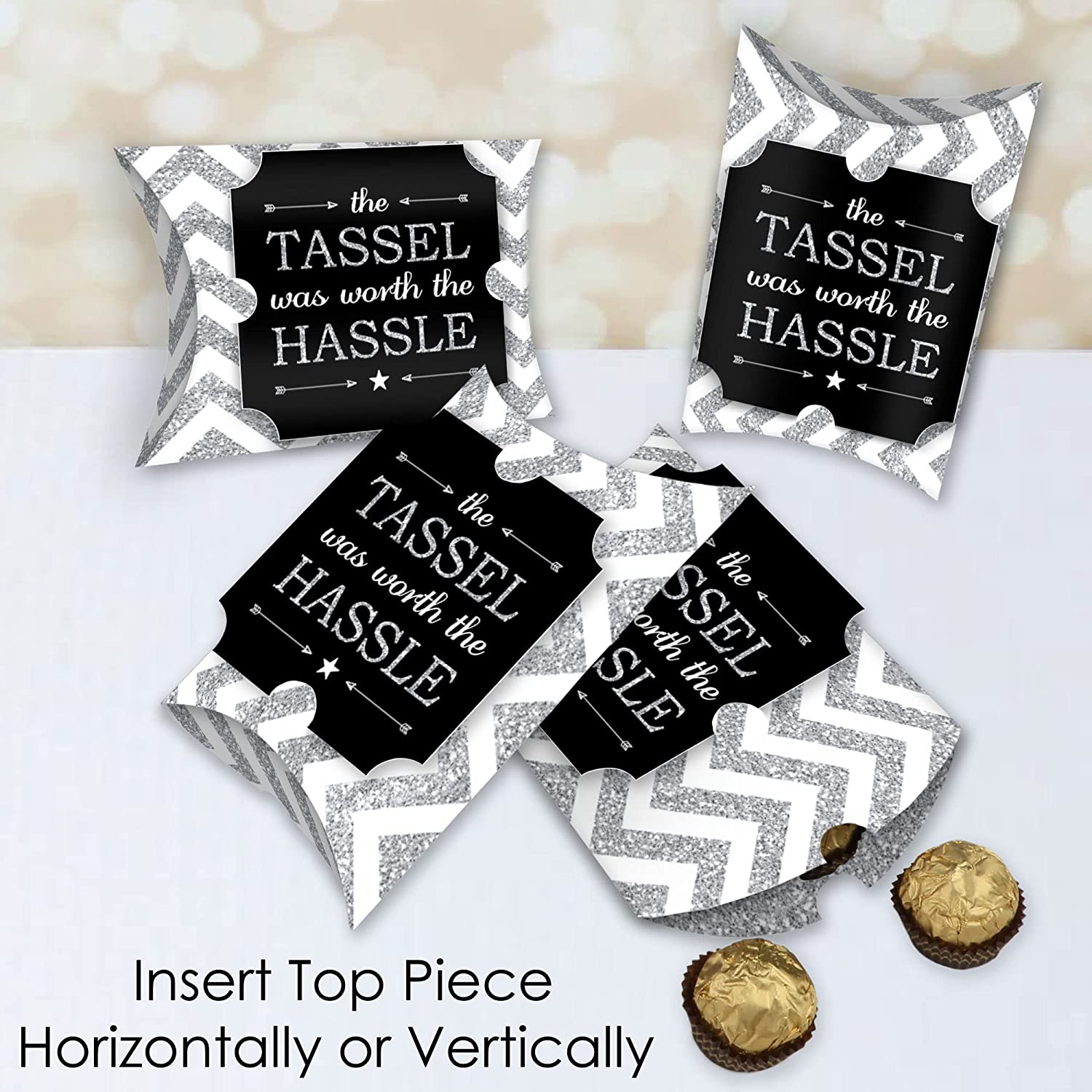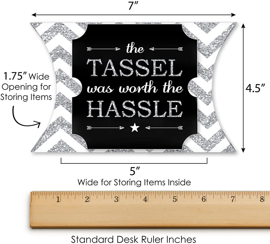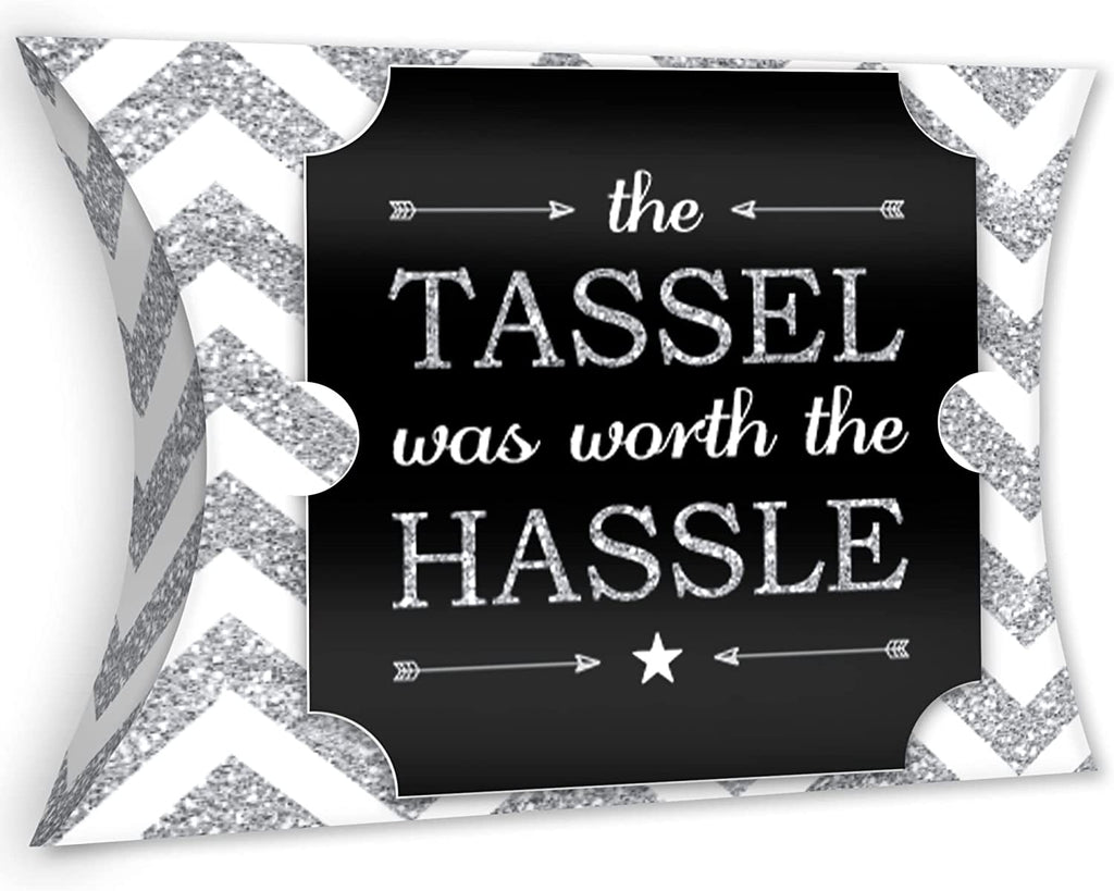 Silver - Tassel Worth The Hassle - Favor Gift Boxes - Graduation Party Large Pillow Boxes - Set of 12 is backordered and will ship as soon as it is back in stock.