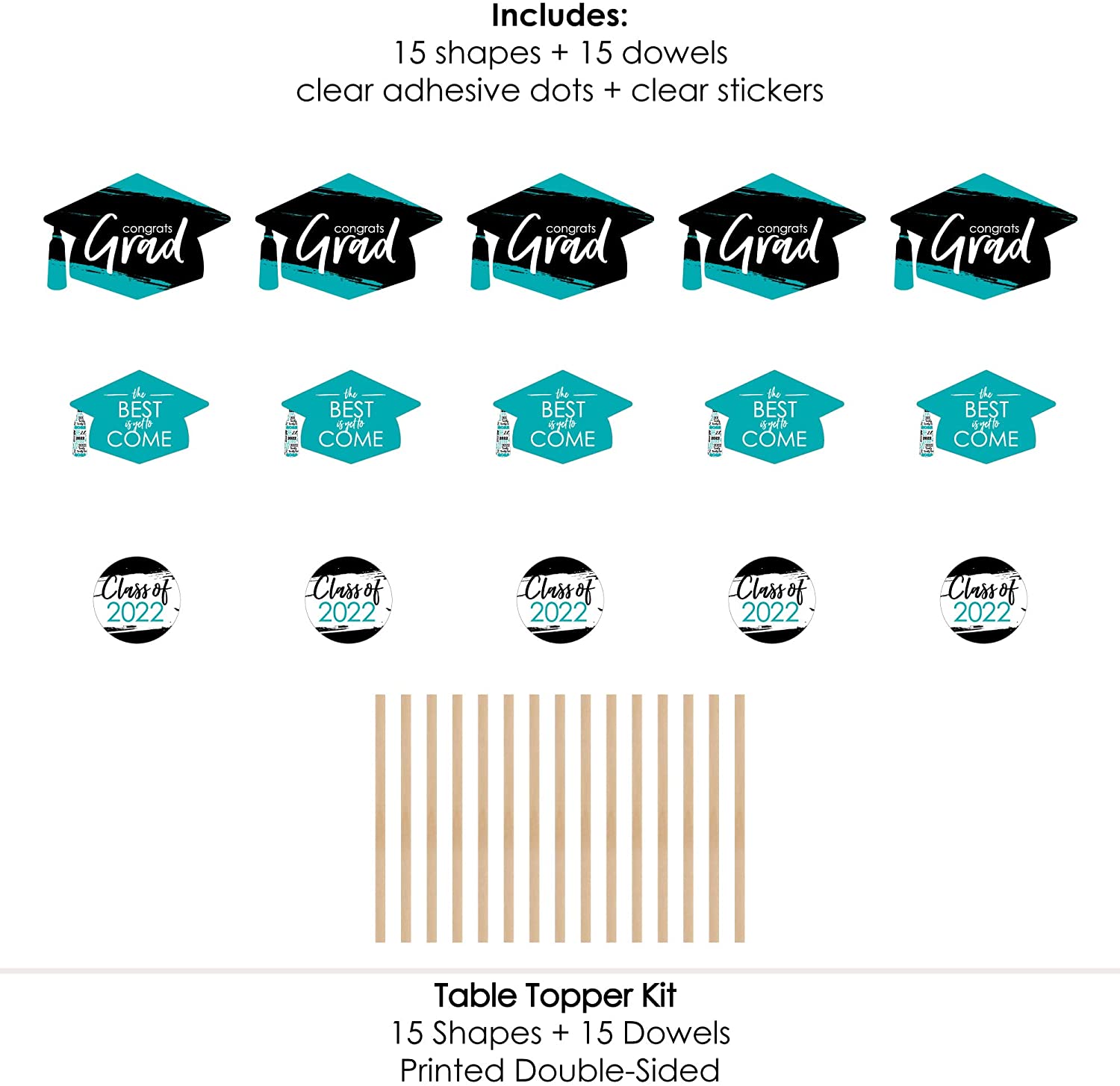 Teal Grad - Best is Yet to Come - 2022 Turquoise Graduation Party Centerpiece Sticks - Table Toppers - Set of 15 is backordered and will ship as soon as it is back in stock.