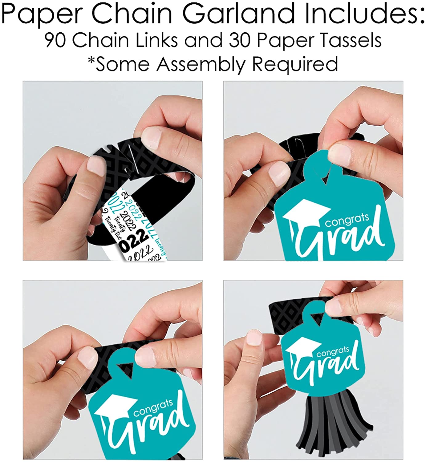 Teal Grad - Best is Yet to Come - 90 Chain Links and 30 Paper Tassels Decoration Kit - 2022 Turquoise Graduation Party Paper Chains Garland - 21 feet is backordered and will ship as soon as it is back in stock.