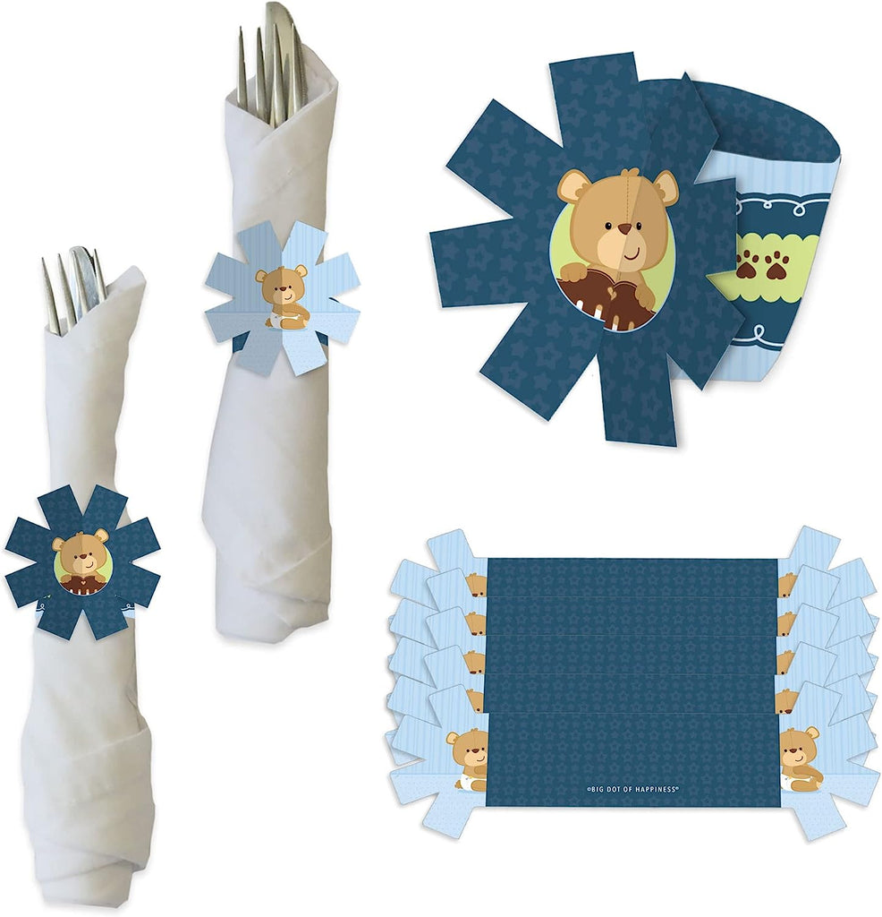 Baby Boy Teddy Bear - Baby Shower Paper Napkin Holder - Napkin Rings - Set of 24