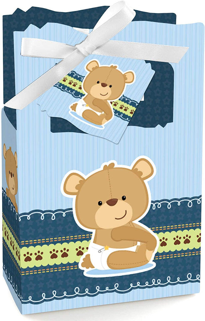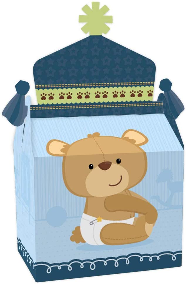 Baby Boy Teddy Bear - Treat Box Party Favors - Baby Shower Goodie Gable Boxes - Set of 12
