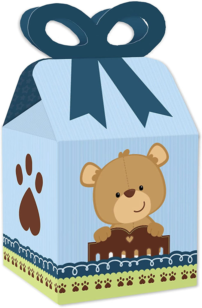 Baby Boy Teddy Bear - Square Favor Gift Boxes - Baby Shower Bow Boxes - Set of 12
