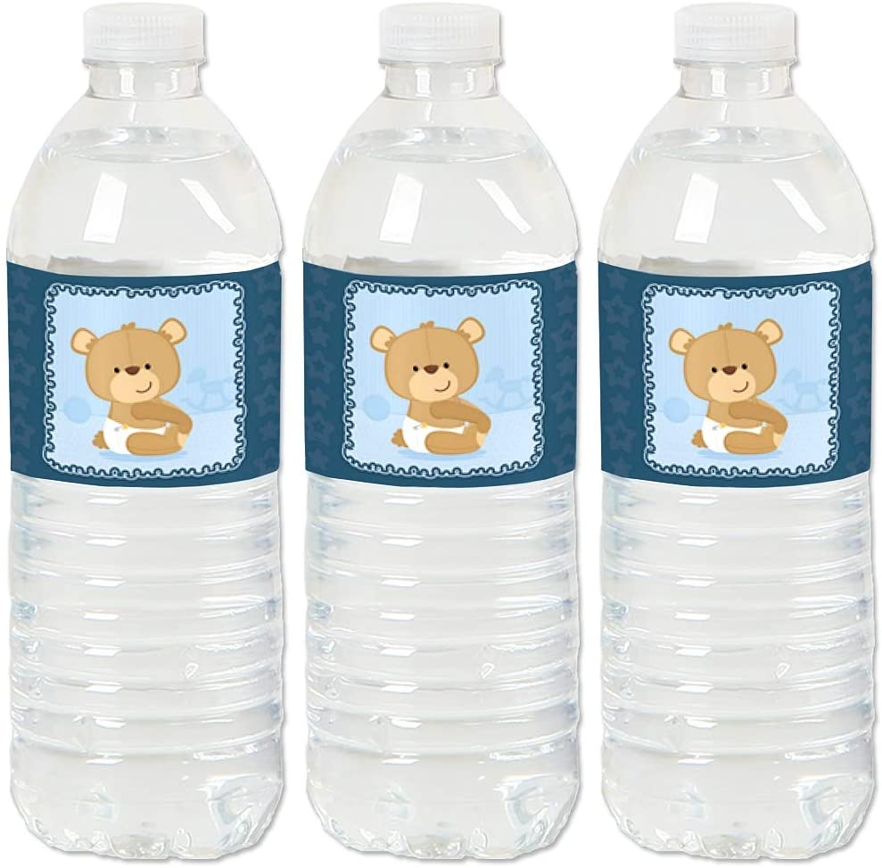 Baby Boy Teddy Bear - Baby Shower Water Bottle Sticker Labels - Set of 20