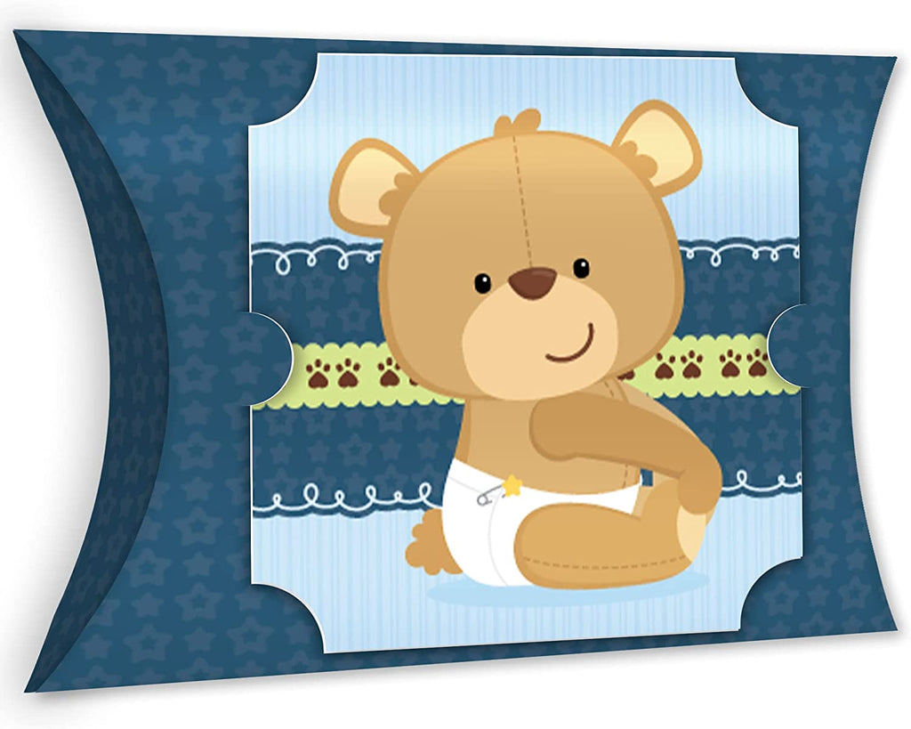 Baby Boy Teddy Bear - Favor Gift Boxes - Baby Shower Large Pillow Boxes - Set of 12
