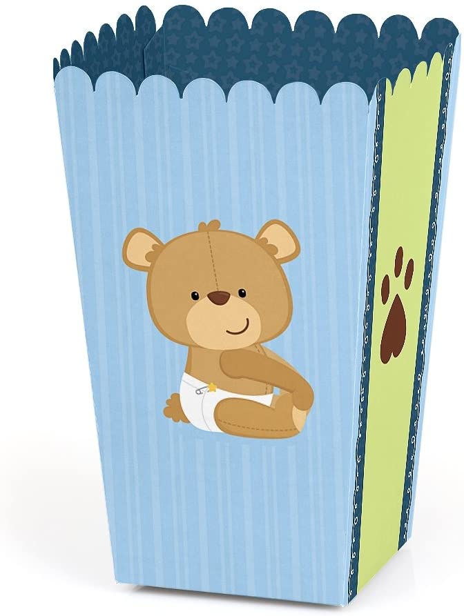 Baby Boy Teddy Bear - Baby Shower Favor Popcorn Treat Boxes - Set of 12
