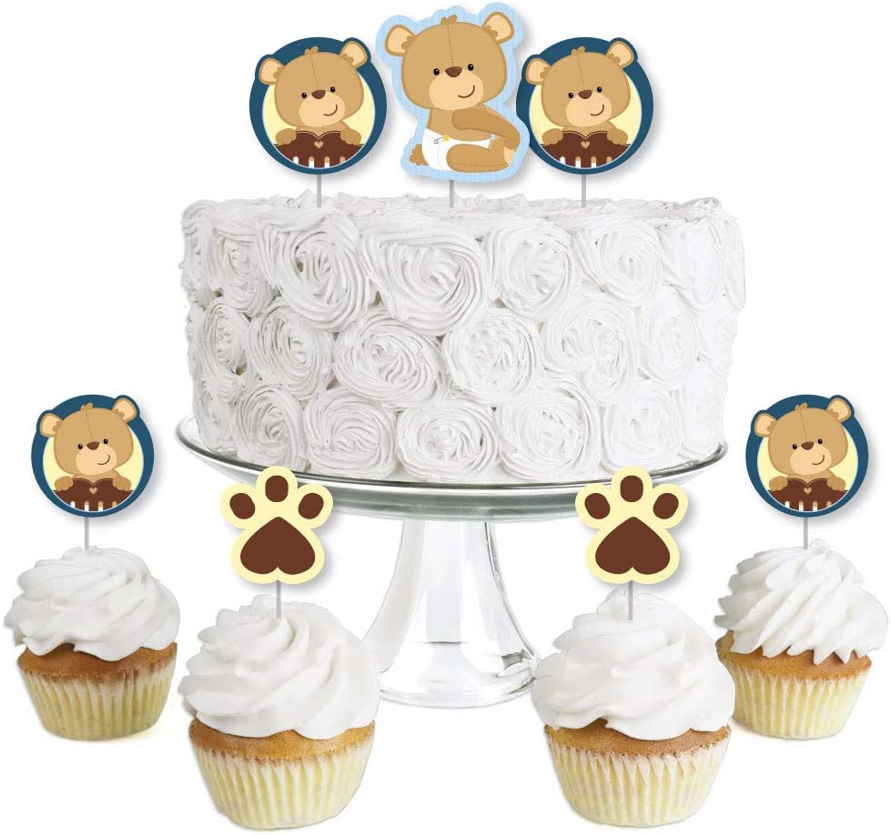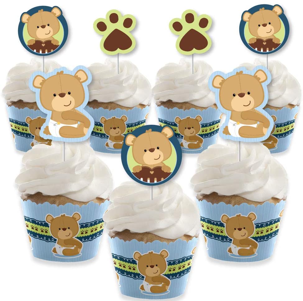 Baby Boy Teddy Bear - Cupcake Decoration - Baby Shower Cupcake Wrappers and Treat Picks Kit - Set of 24