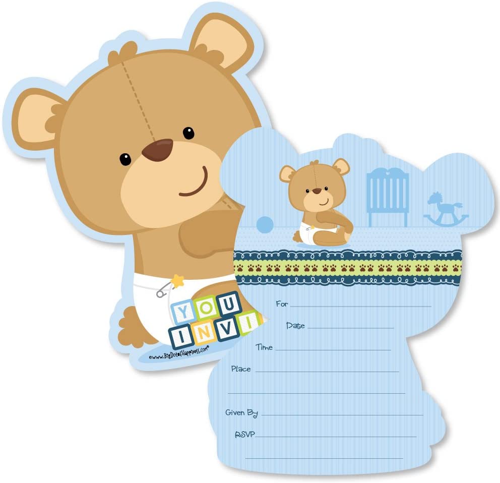 Baby Boy Teddy Bear - Shaped Fill-In Invitations - Baby Shower Invitation Cards with Envelopes - Set of 12