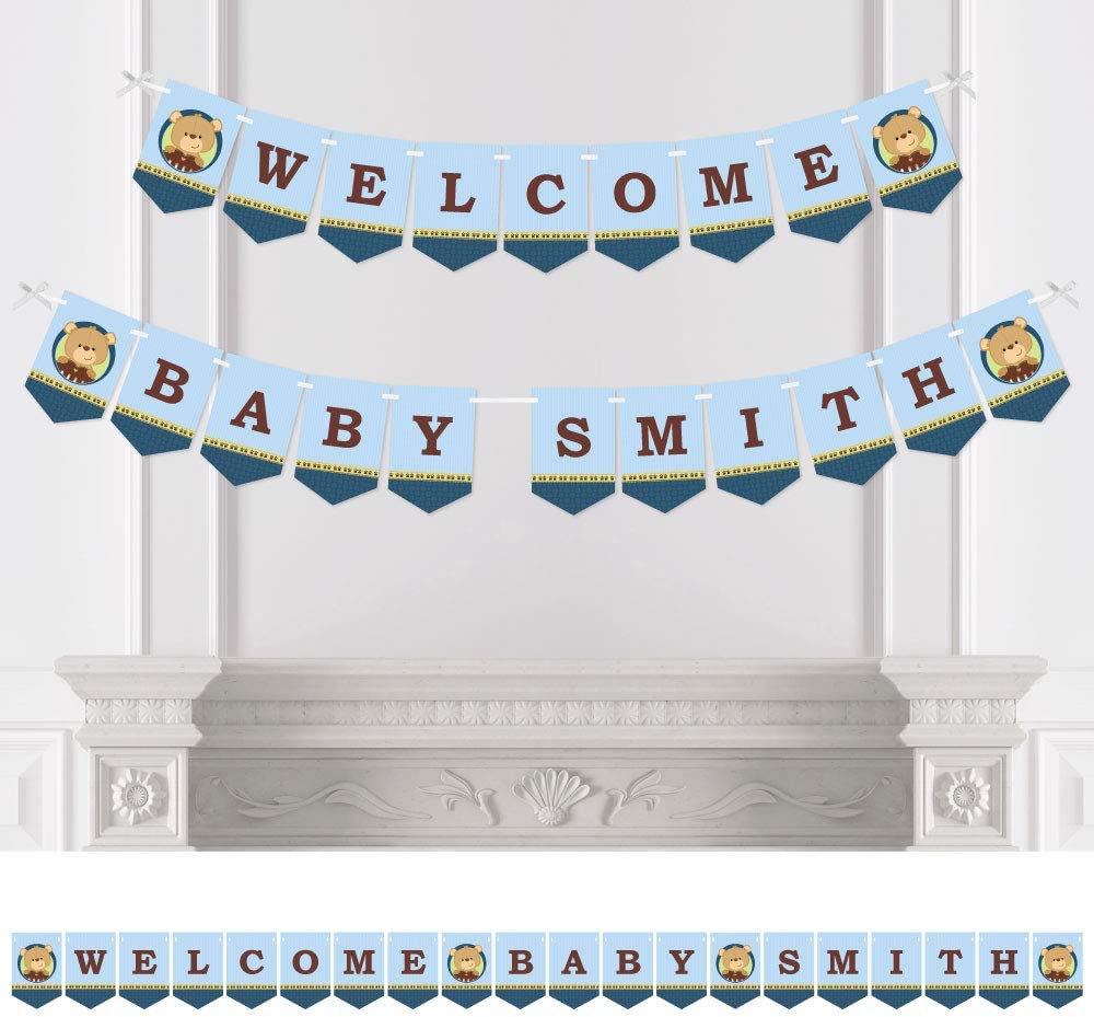 Custom Baby Boy Teddy Bear - Personalized Baby Shower Bunting Banner & Decorations - Welcome Baby Custom Name Banner