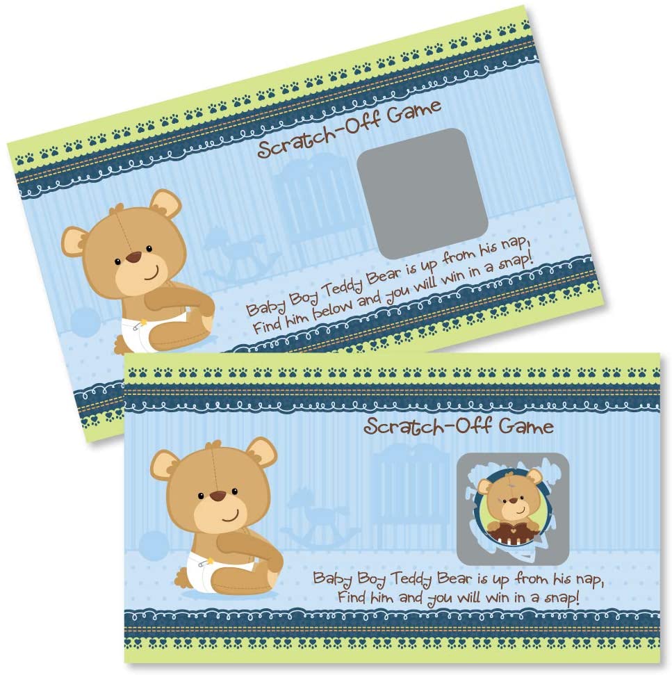 Baby Boy Teddy Bear - Baby Shower or Birthday Party Game Scratch Off Cards - 22 Count