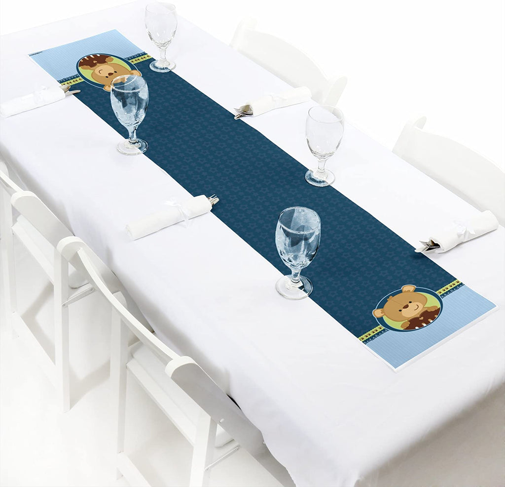 Baby Boy Teddy Bear - Petite Baby Shower Party Paper Table Runner - 12 x 60 inches