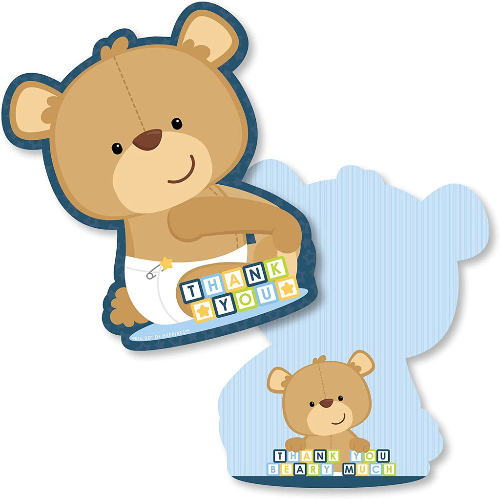 Baby Boy Teddy Bear - Shaped Thank You Cards - Baby Shower Thank You Note Cards with Envelopes - Set of 12