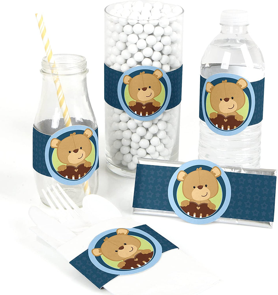 Baby Boy Teddy Bear - DIY Party Supplies - Baby Shower DIY Wrapper Favors & Decorations - Set of 15