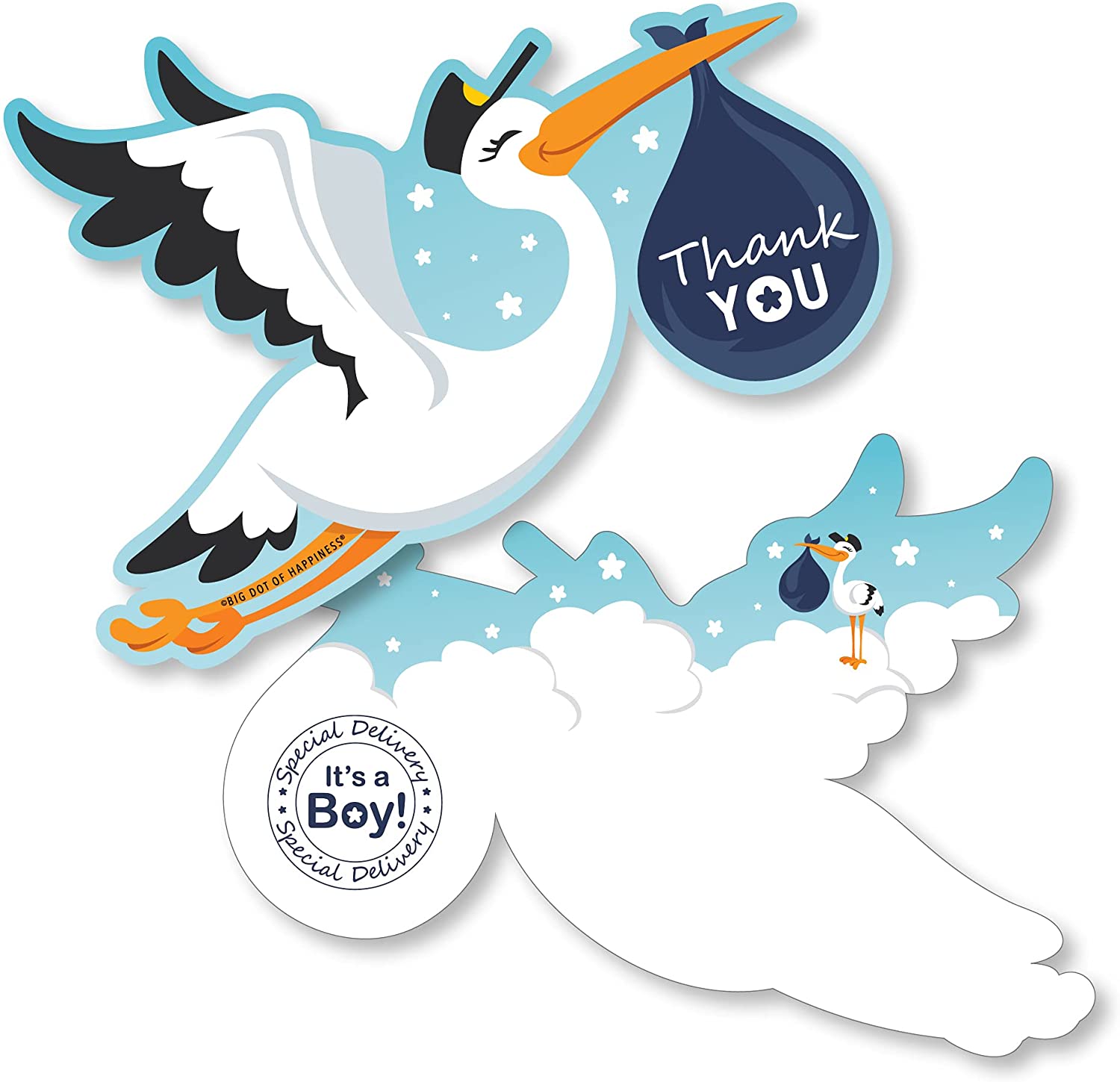 Boy Special Delivery - Shaped Thank You Cards - It’s A Boy Stork Baby Shower Thank You Note Cards with Envelopes - Set of 12 is backordered and will ship as soon as it is back in stock.