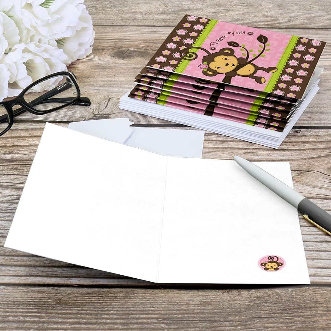 Pink Monkey Girl - Baby Shower or Birthday Party Thank You Cards (8 count) is backordered and will ship as soon as it is back in stock.