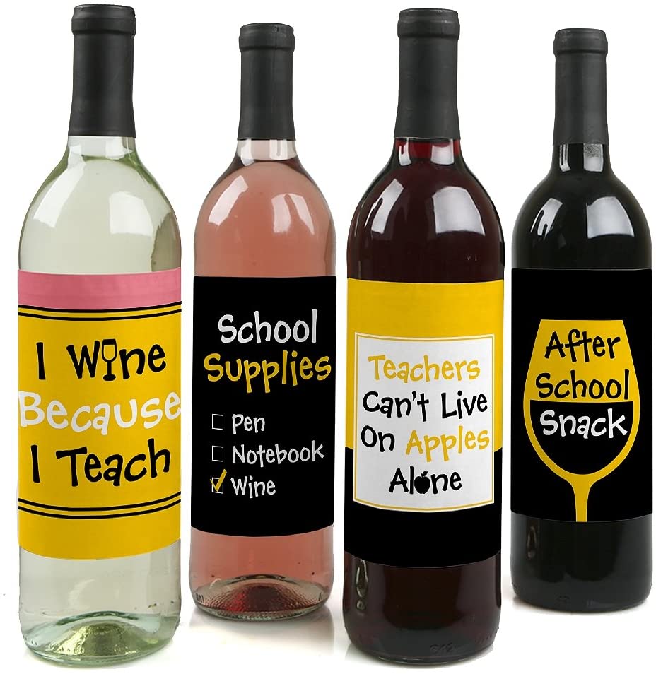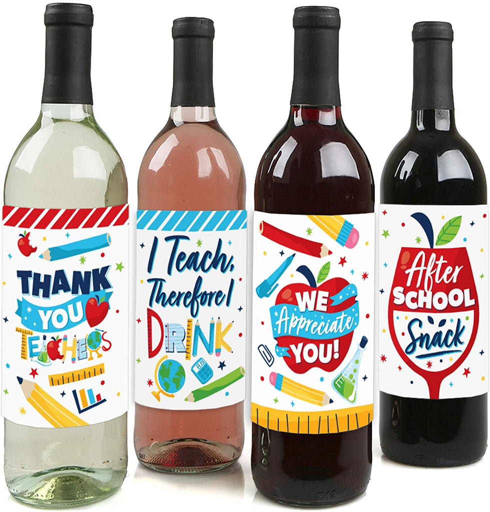 Thank You Teachers - Teacher Appreciation Decorations for Women and Men - Wine Bottle Label Stickers - Set of 4