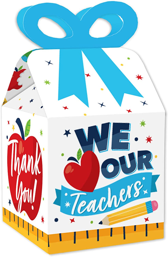 Thank You Teachers - Square Favor Gift Boxes - Teacher Appreciation Bow Boxes - Set of 12