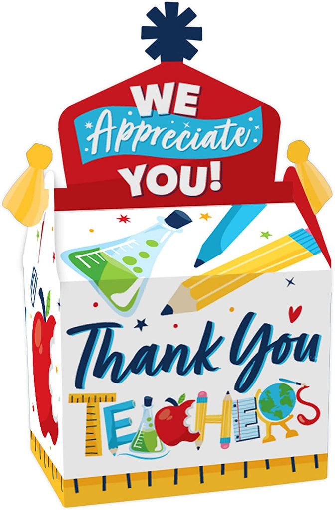 Thank You Teachers - Treat Box Party Favors - Teacher Appreciation Goodie Gable Boxes - Set of 12