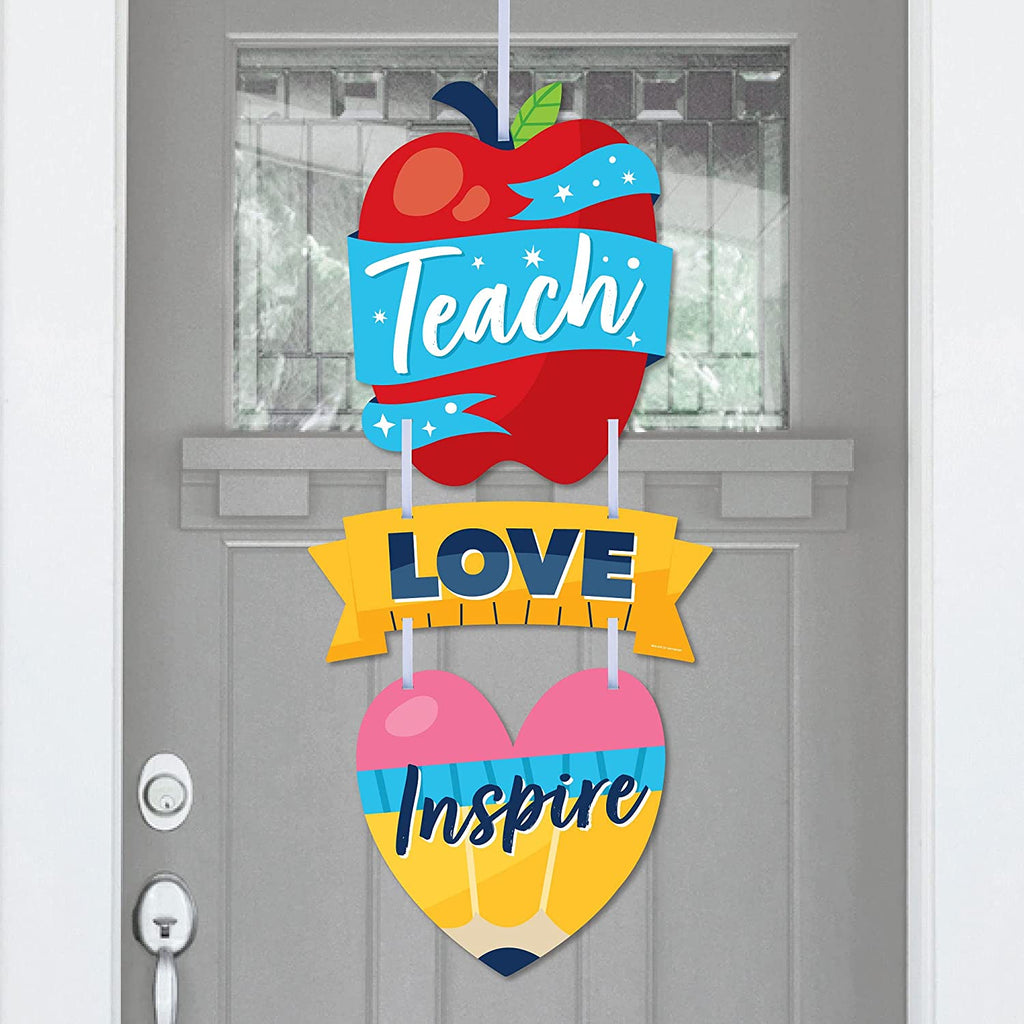Thank You Teachers - Hanging Porch Teacher Appreciation Outdoor Decorations - Front Door Decor - 3 Piece Sign