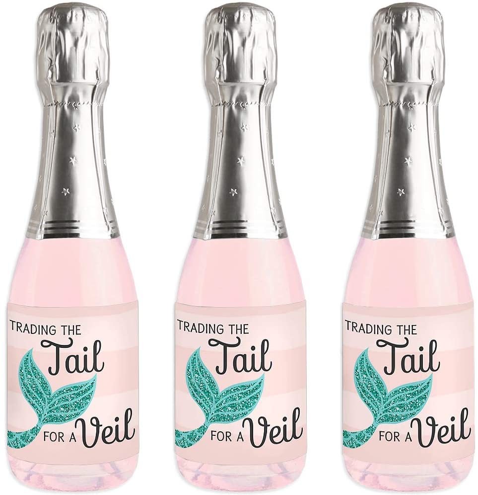 Trading The Tail For A Veil - Mini Wine and Champagne Bottle Label Stickers - Mermaid Bachelorette or Bridal Shower Favor Gift for Women and Men - Set of 16