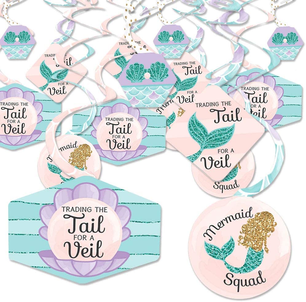 Trading The Tail for a Veil - Mermaid Bachelorette or Bridal Shower Hanging Decor - Party Decoration Swirls - Set of 40
