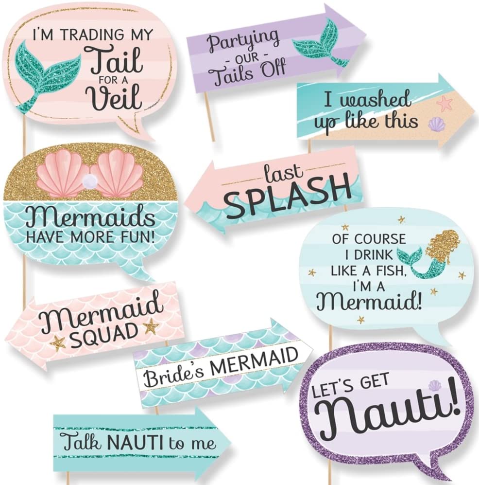 Funny Trading The Tail For A Veil - Mermaid Bachelorette Party or Bridal Shower Photo Booth Props Kit - 10 Piece