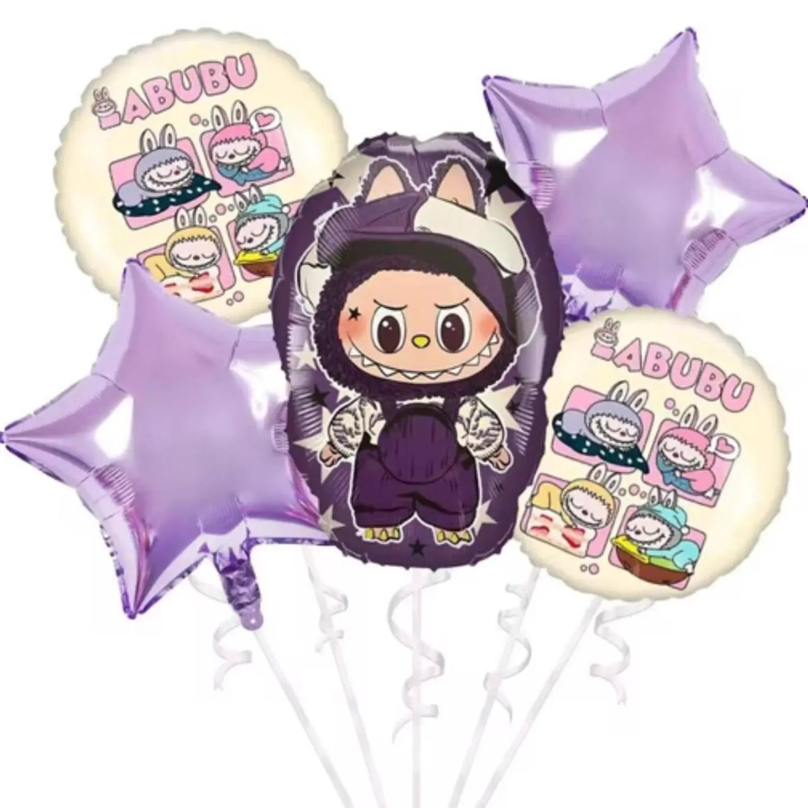 LABUBU - Purple Balloon Bouquet - 5 Balloons - With Helium