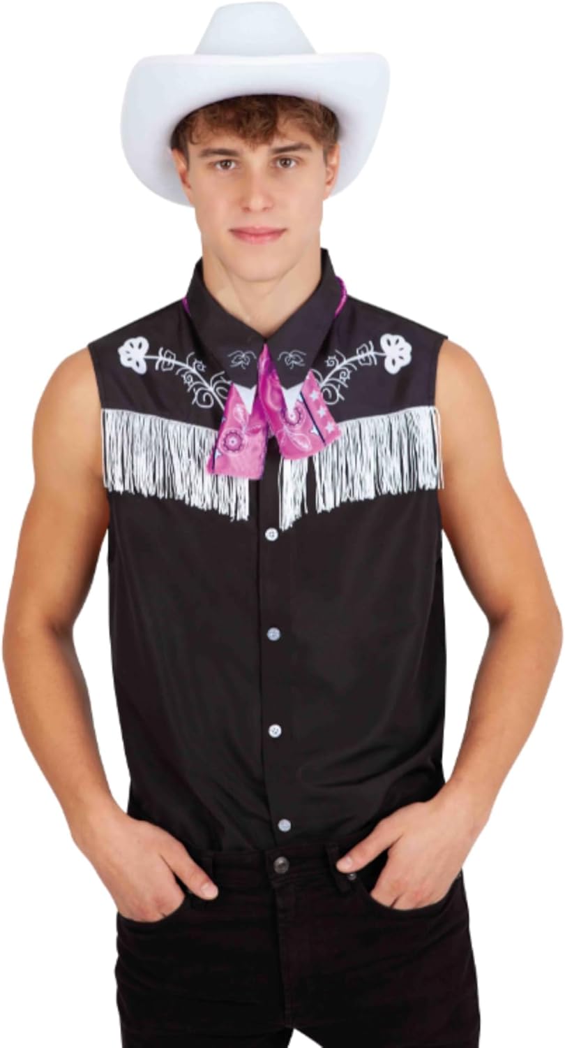 Giddy up, cowboy! Become Barbie’s other half this Halloween when you wear this officially licensed Western Ken Costume. This western-style kit includes a black cowboy shirt and a pink bandana, giving you everything you need to nail the look.